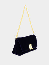 This mini shoulder bag in luxurious ink blue velvet by Tom Ford is an embodiment of refined glamour. Crafted from a sumptuous blend of viscose and silk, it features a sleek flap design accented by a bold gold-tone clasp and a polished chain strap for an elevated finish. Its compact silhouette makes it perfect for evening affairs, offering a touch of opulence while remaining effortlessly chic.