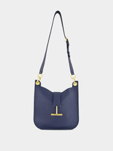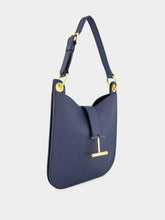 The Tara Small Shoulder Bag in denim blue grain calfskin combines versatility and refined elegance. Highlighted by Tom Ford’s signature hanging T hardware, it features both adjustable and detachable straps for shoulder or crossbody wear. The structured silhouette opens to two compartments and an interior zipped pocket, secured by a magnetic flap. Lined in soft microfiber, this sophisticated piece transitions seamlessly from day to evening.
