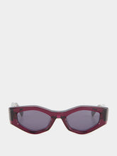 V-Tre Purple Sunglasses, a blend of style and craftsmanship with a narrow geometric shape, crafted from the finest chunky Japanese acetate. Despite its sleek appearance, these sunglasses boast elaborate sculpting, expansive volume, and deep dimensionality.