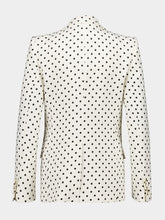 A sophisticated take on classic tailoring, the Birch Supergran Plusdepois Print Jacket is a statement piece enriched with exquisite details. Crafted from Supergran Plusdepois viscose fabric, this single-breasted blazer features an elegant polka-dot pattern, a striking Double Douchesse bow detail, and refined passementerie accents on the inside. Designed for a structured yet feminine silhouette, it boasts a front button closure, side pockets, and a luxurious Crepe de Chine lining adorned with a diagonal stripe V Logo motif. A timeless piece that seamlessly blends modern elegance with vintage charm.