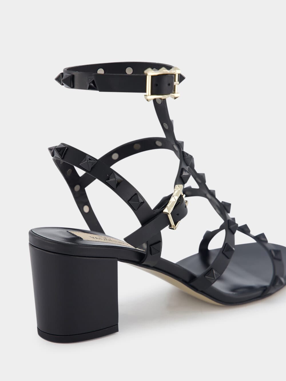 Discover timeless elegance with the Valentino Garavani Rockstud Calfskin Ankle Strap Sandal. Crafted in luxurious calfskin leather, this iconic sandal features platinum-finish studs that redefine sophistication. The adjustable straps offer a customized fit, ensuring both comfort and style. With a moderate 60 mm heel height, these sandals effortlessly blend fashion and practicality. Step into the epitome of luxury with these Rockstud sandals, a perfect addition to your high-fashion footwear collection.