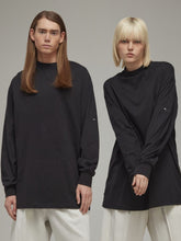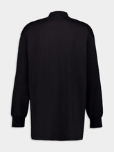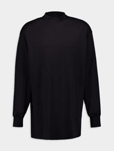 Mock-Neck Long-Sleeved Cotton Sweatshirt. Cut for a loose fit, this black cotton sweatshirt boasts a contemporary mock-neck silhouette that's both stylish and comfortable. Crafted from premium cotton, it offers exceptional softness and warmth. With long sleeves, it's perfect for layering or wearing on its own.