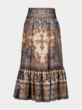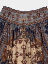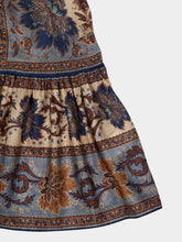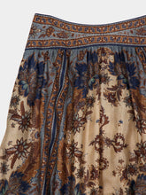 Ascension Blue Cream Indienne Floral Silk Midi Skirt