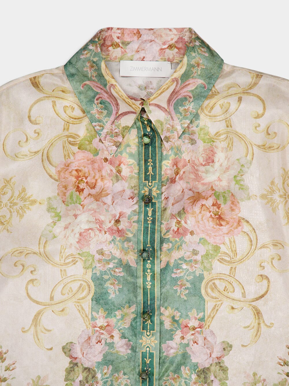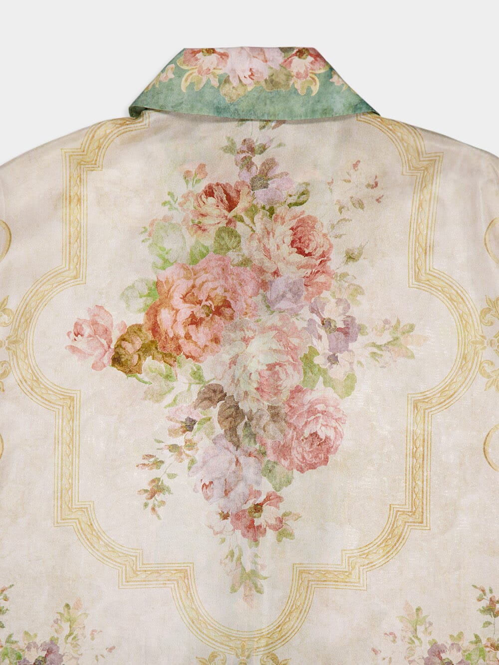 Radiate classic charm with this vintage-inspired floral shirt. The pastel palette and ornate button detailing speak to a timeless elegance, while the relaxed fit ensures modern comfort. Ideal for adding a touch of nostalgia to your everyday wardrobe.