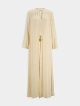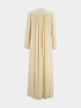 The Silk Slip Dress in Tea from the Resort Collection features a maxi length, low back with criss-cross straps, and a deep-V neckline. This elegant silk dress includes gathers through the bodice and waist, fixed straps, and an invisible zip closure.