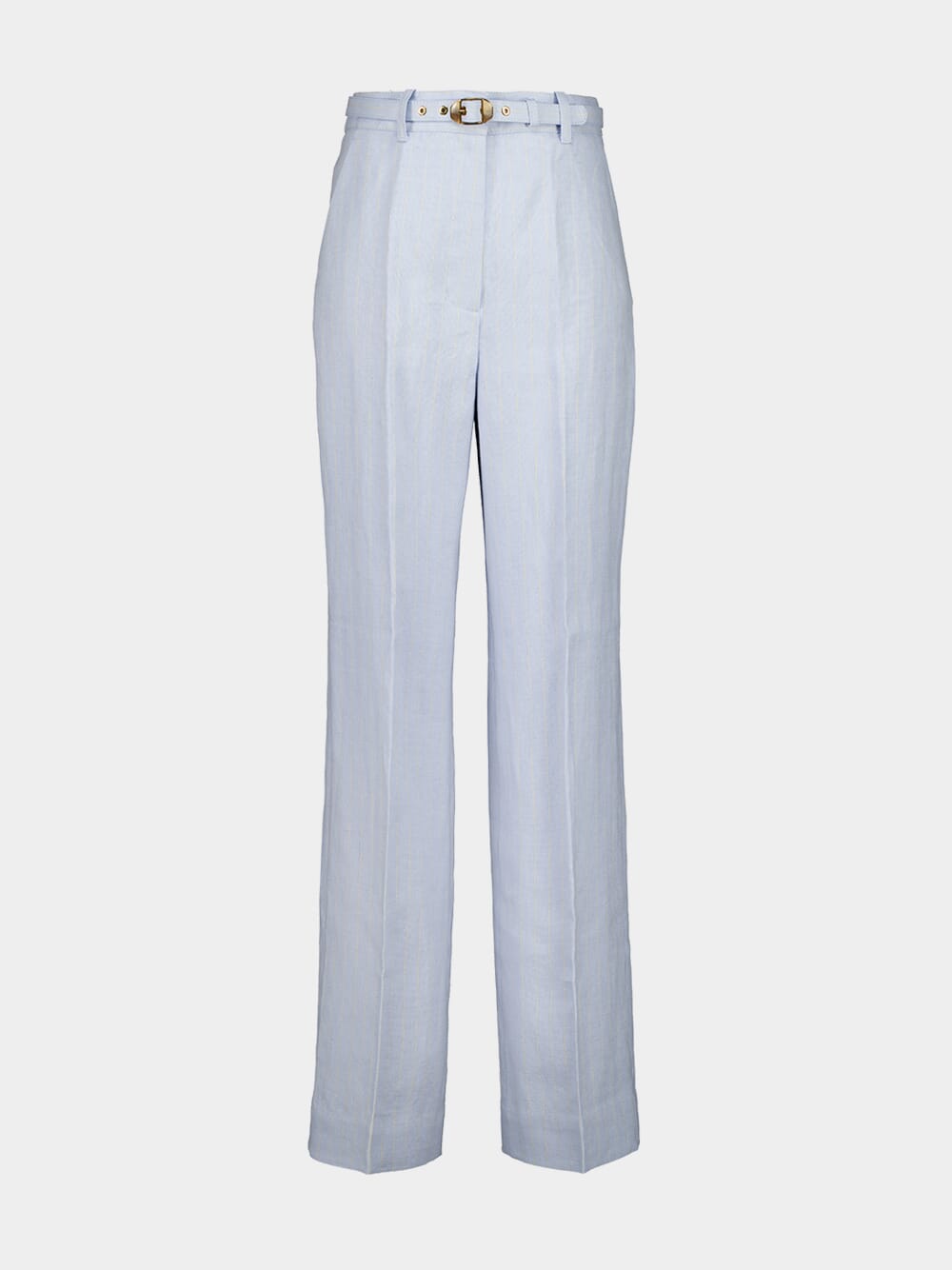 This pale blue long-sleeve safari shirt by Zimmermann is crafted from lightweight ramie, offering a refined take on utility dressing. Featuring a structured silhouette, flap chest pockets, gold-tone buttons, and tailored cuffs, it blends function with elegance. Perfect for warm-weather layering, its breathable fabric and polished details make it ideal for both casual and elevated looks.