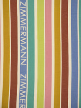 The Stripe Jacquard Cotton Towel from Zimmermann's Resort Swim 2025 Collection is crafted from premium 100% cotton. Featuring a vibrant multi-stripe pattern, this luxurious towel combines style with functionality. The jacquard weave enhances the texture, while the fringed edging and bold branding throughout add a refined touch. Perfect for beach days or poolside lounging, this towel is both elegant and practical.