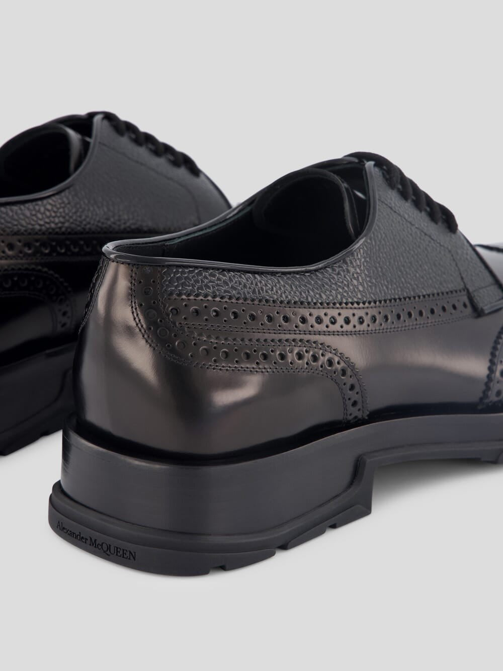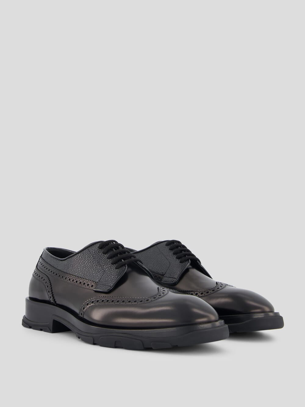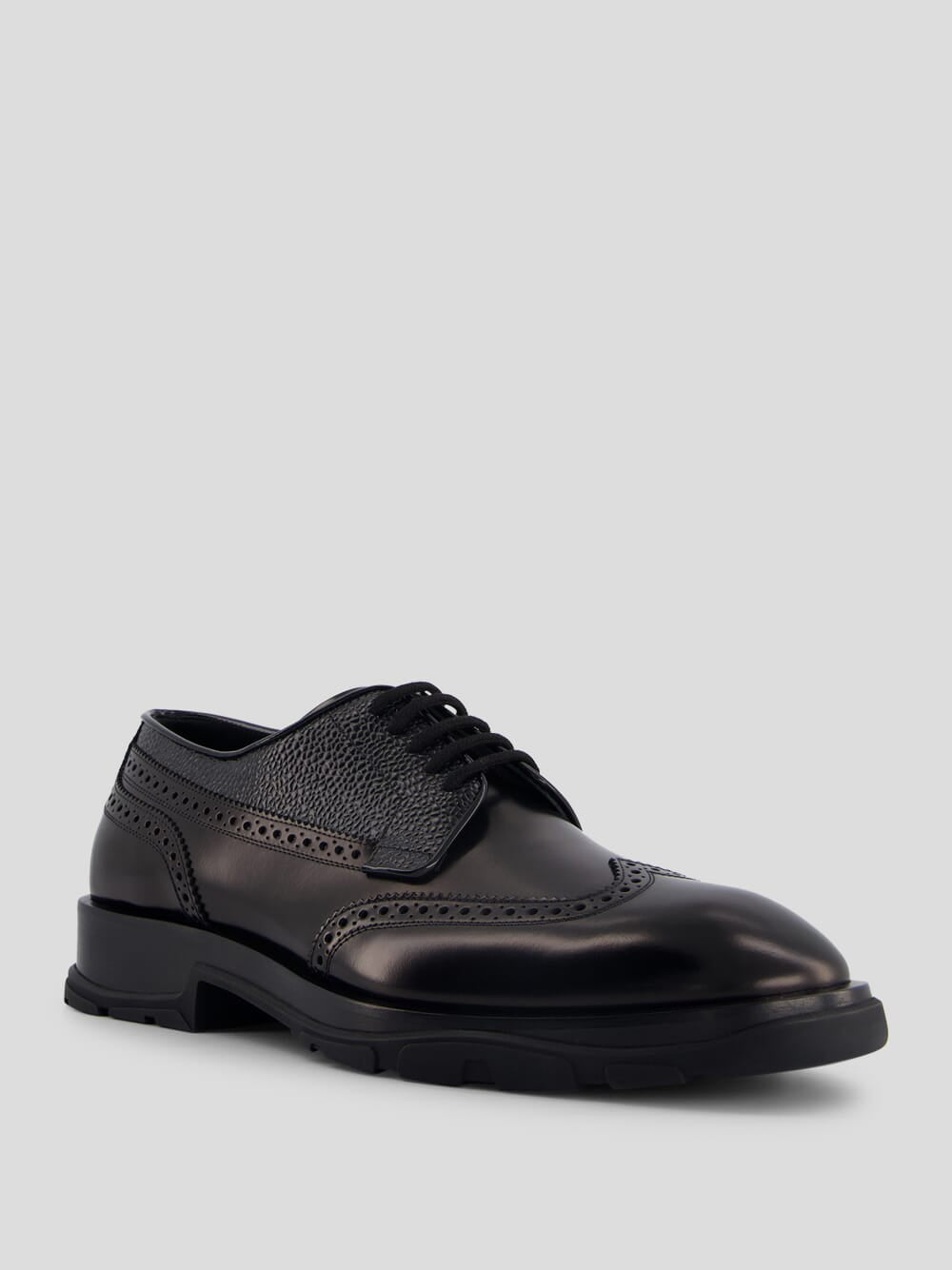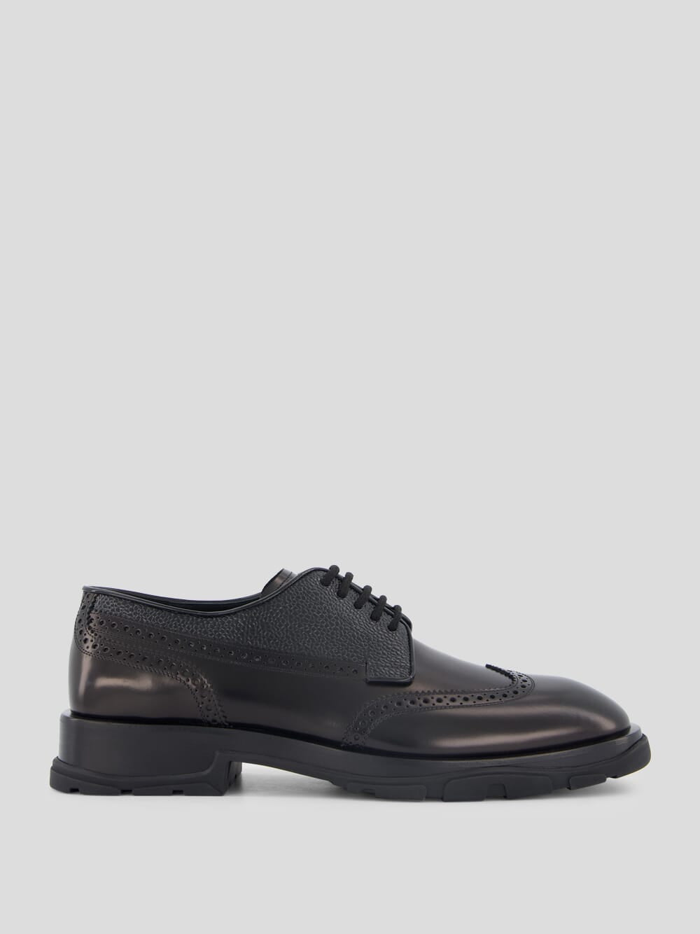 Lace-Up Leather Brogues, meticulously crafted for a seamless blend of style and comfort. The panelled design and intricate perforated detailing exude sophistication, making a lasting impression. Featuring a front lace-up fastening and round toe, these brogues ensure a secure fit and classic appeal. Complete with a flat rubber sole, experience superior traction and all-day comfort. E
