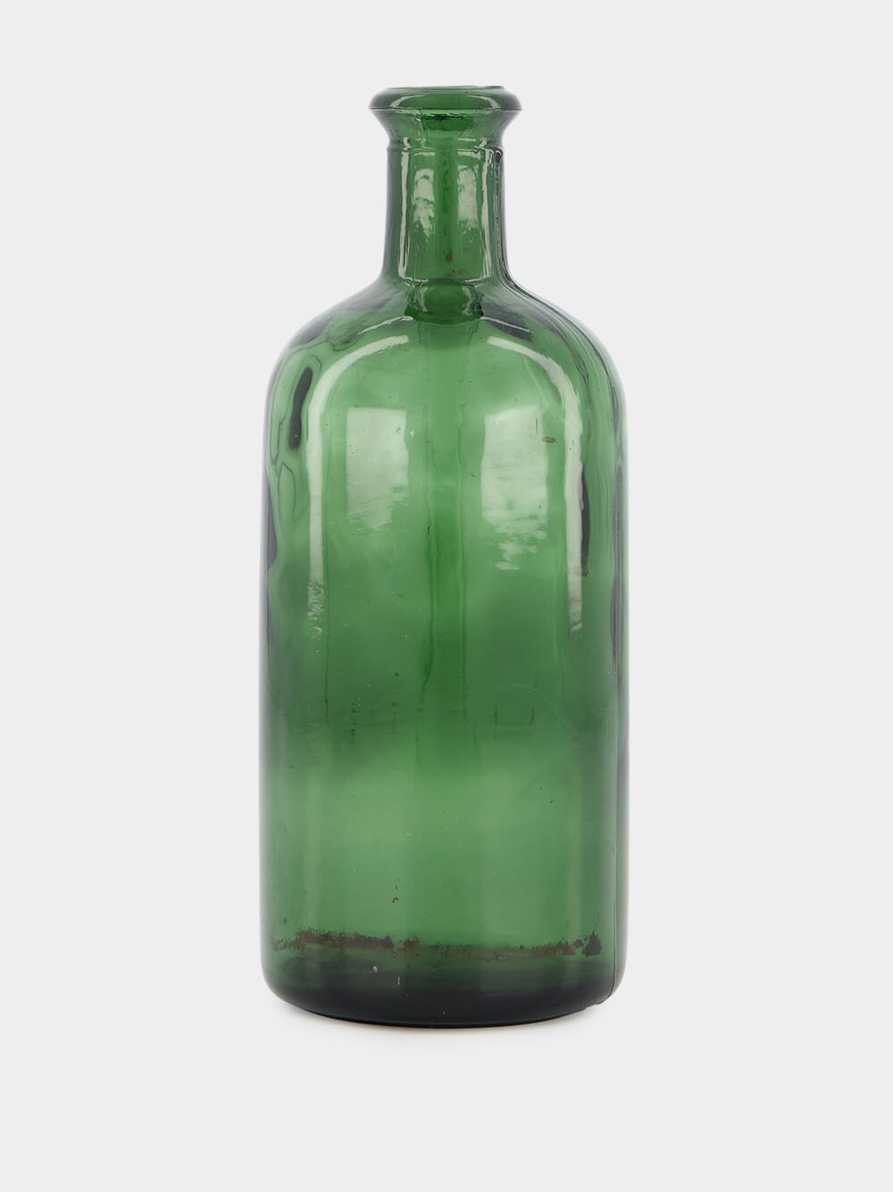 This distinguished pharmacist's glass bottle, in a deep green hue, is a genuine nod to medicinal history. Its time-honored design and substantial size make it an ideal accent piece for adding a touch of historical elegance to your shelves or as an intriguing container for your botanical arrangements.