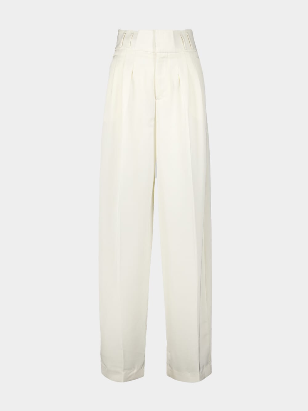 Tyr High-Waist Tailored Trousers, expertly crafted from a premium cotton blend for ultimate comfort and durability. The pleat detailing adds a touch of sophistication, while the high waist and tailored cut create a flattering silhouette. Embrace effortless elegance with the wide leg design and notched waistband, complemented by belt loops for a personalized fit. The concealed front zip fastening ensures a seamless look, and the two side inset pockets and two rear welt pockets add practicality to this chic wardrobe staple.