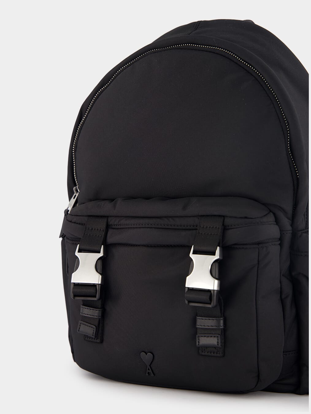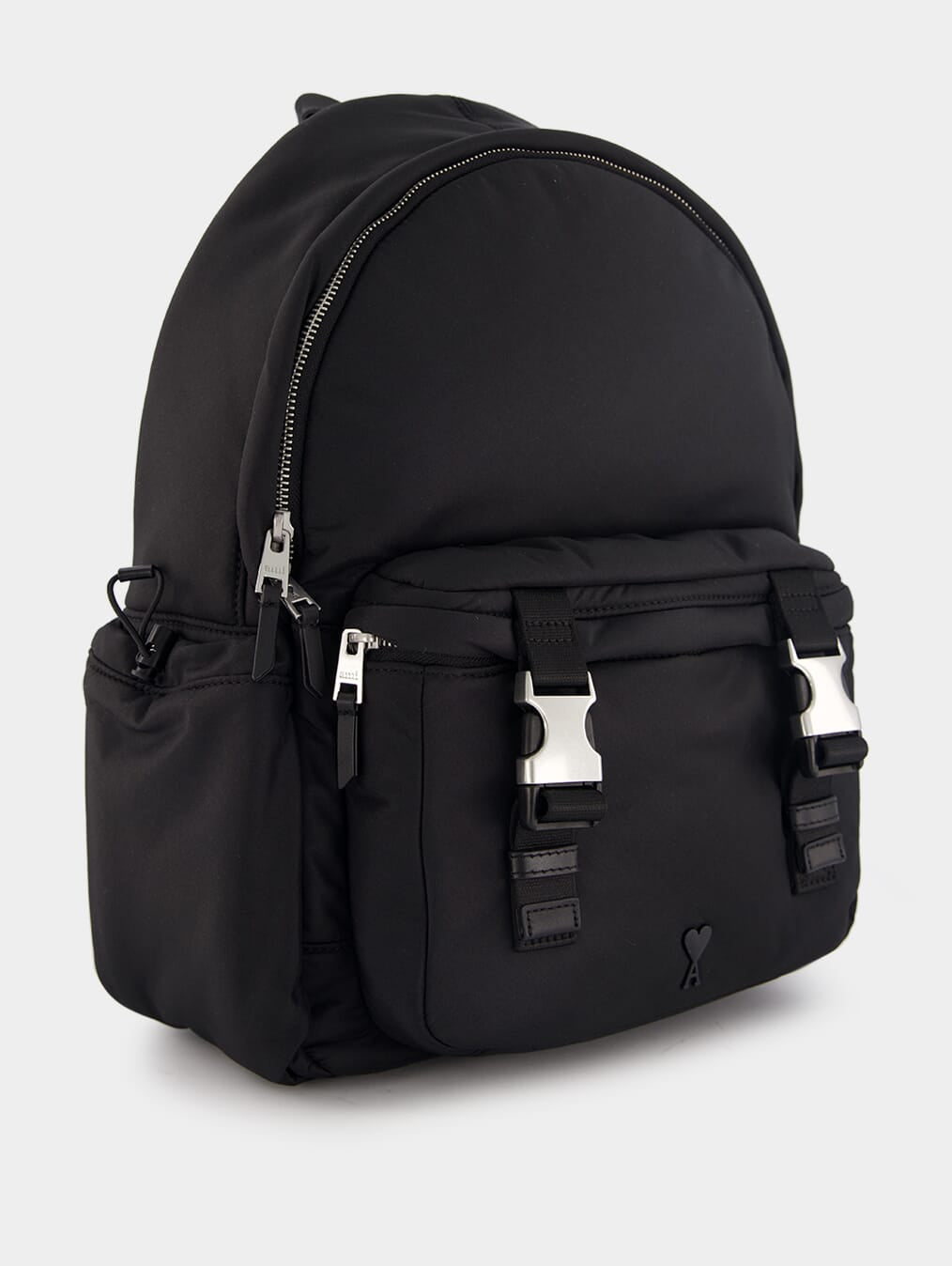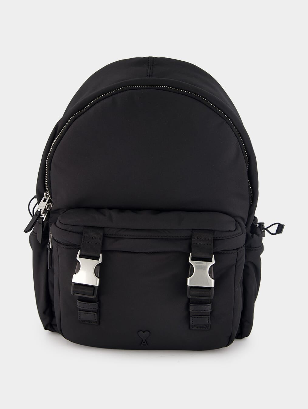 Ami De Coeur Monogram Motif Zip-Up Backpack, featuring a padded design for comfort and durability. Adorned with the signature Ami de Coeur monogram motif and a tonal logo plaque, it's a statement of timeless style. The silver-tone hardware complements the sleek design, while the all-around zip fastening and double buckle closure provide security and accessibility. Carry it effortlessly with the single flat top handle or adjustable shoulder straps. Stay organized with a front zip-fastening pocket, spacious main compartment, and internal features including an internal logo patch and padded laptop pocket. Plus, two side patch pockets offer additional storage. Upgrade your accessory collection with this chic and functional backpack today.