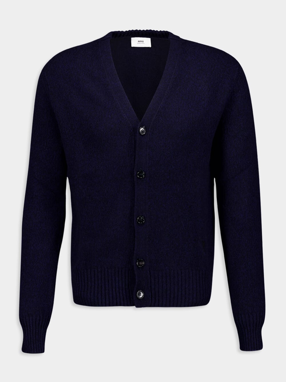 Midnight Blue Cashmere and Wool V-Neck Cardigan. Crafted from a sumptuous cashmere-wool blend, this cardigan is both warm and stylish. Featuring long sleeves and a front button fastening, it's the perfect blend of comfort and elegance. The straight hem adds a tailored touch to this classic piece.