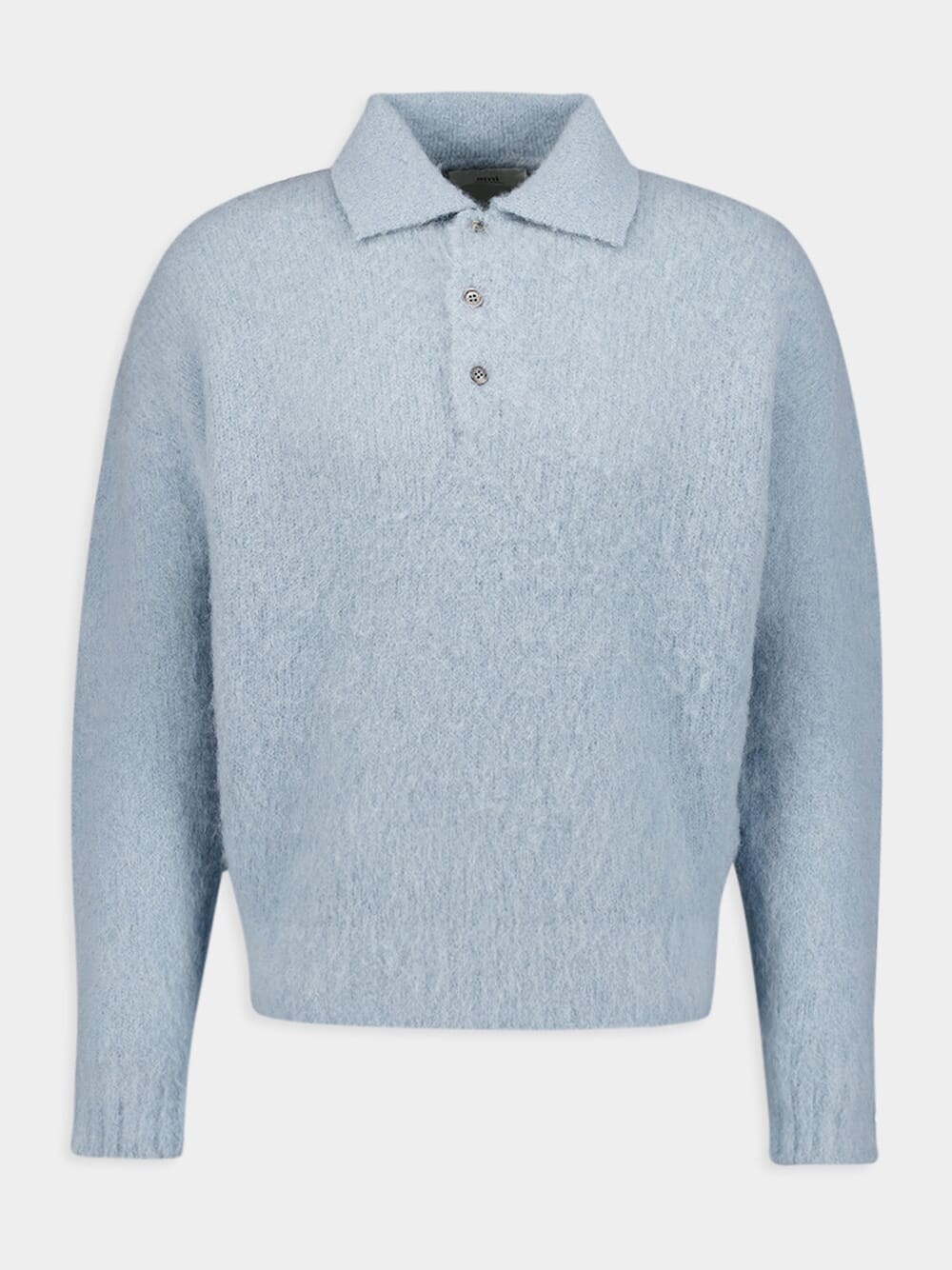 Textured Alpaca Polo Shirt, expertly crafted from a premium alpaca wool-blend for exceptional warmth and comfort. The textured finish adds a touch of sophistication, while the classic polo collar offers timeless elegance. With a front button placket, long sleeves, and ribbed cuffs and hem, this shirt combines fashion and functionality effortlessly.