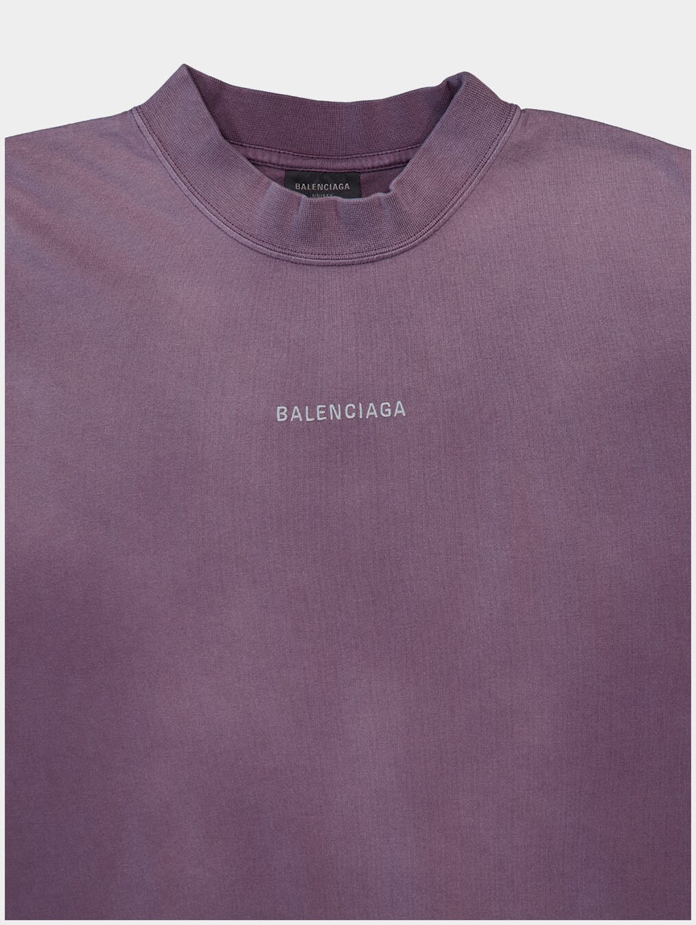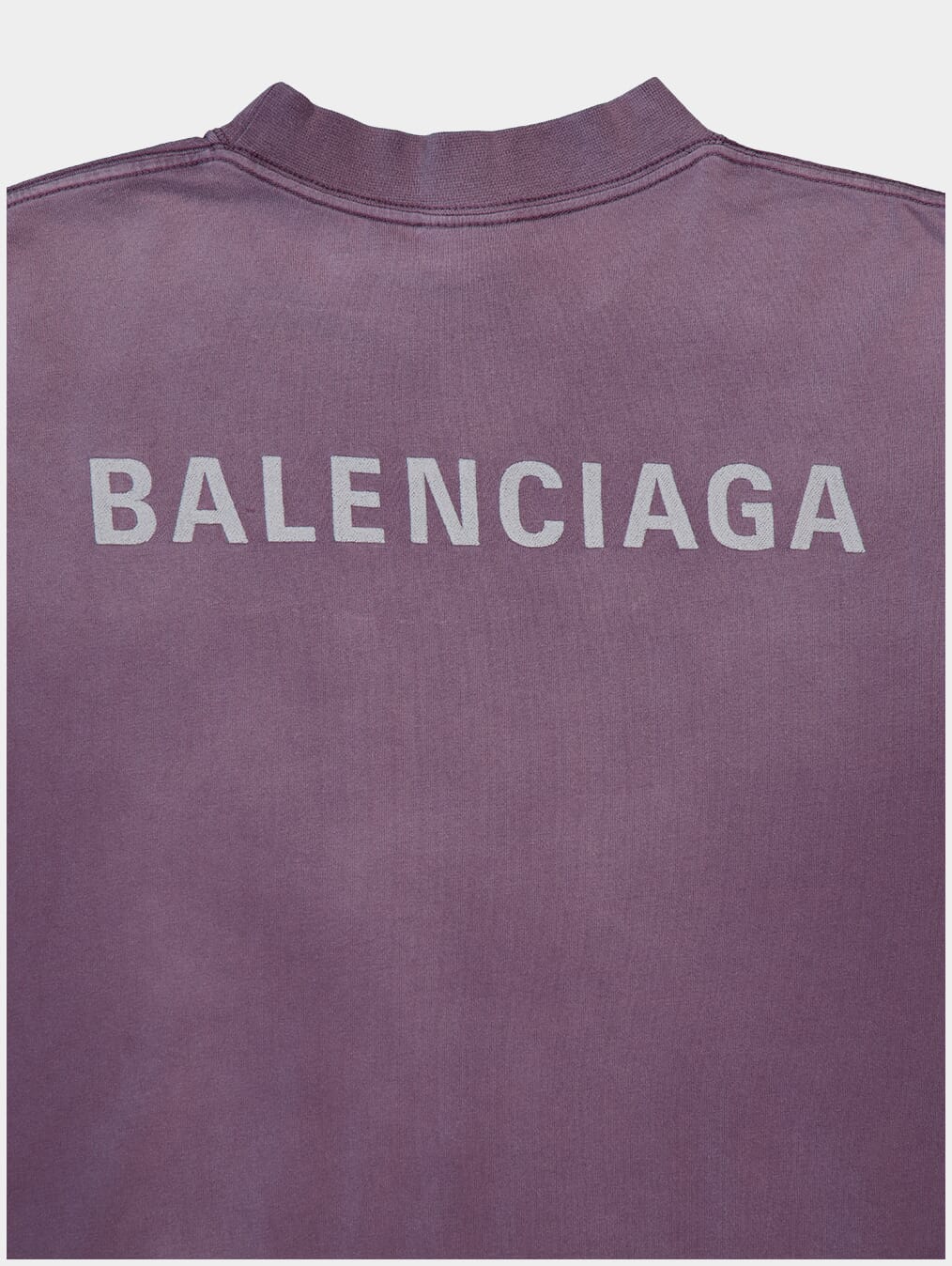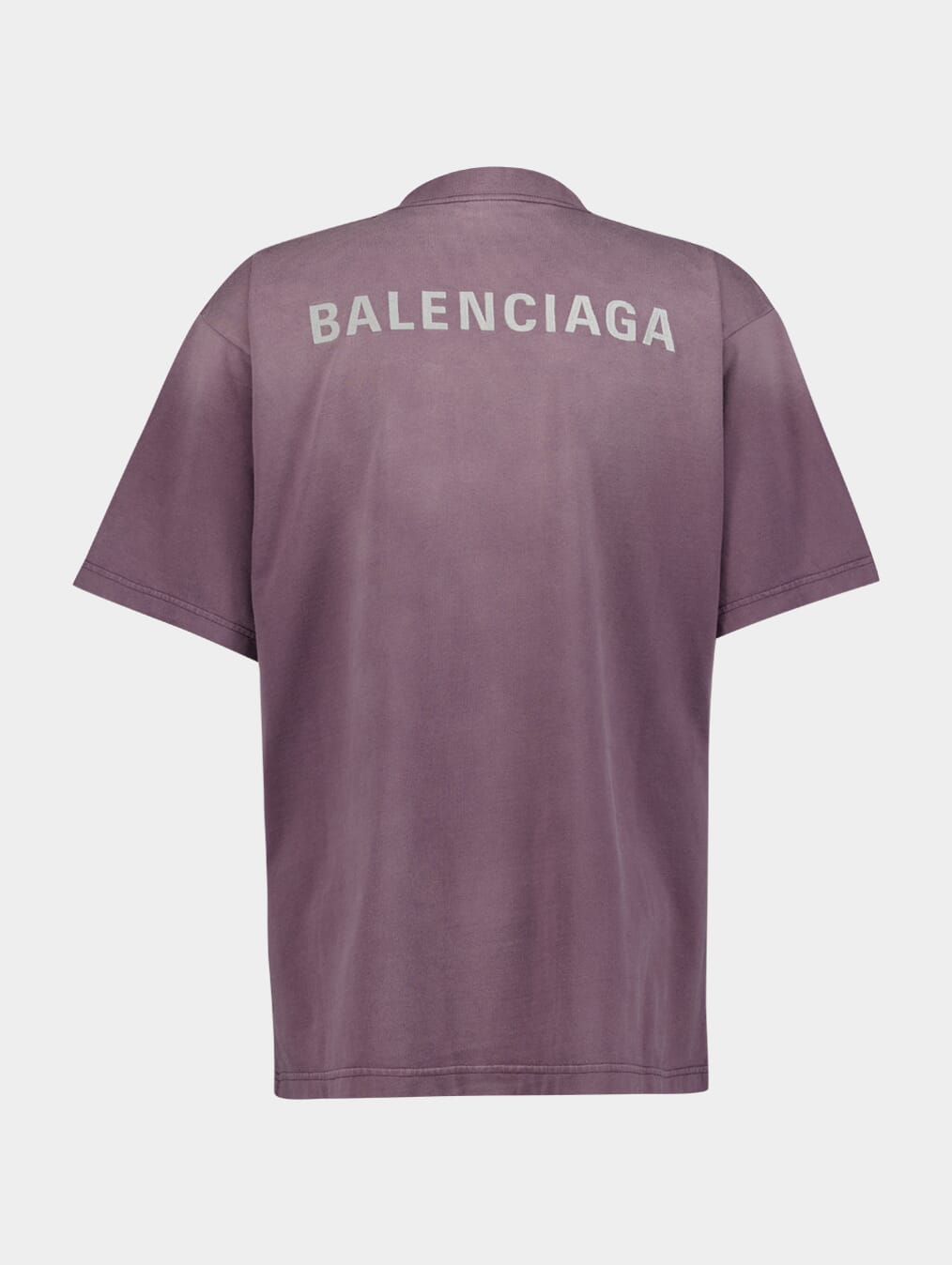 Logo-Print Faded Effect T-Shirt, crafted from vintage jersey for a unique and comfortable feel. This unisex t-shirt offers a medium fit, making it a versatile addition to any wardrobe. Featuring a classic crewneck and short sleeves, it exudes effortless style. The Balenciaga back logo is intricately embroidered at both the front and back, adding a touch of sophistication to the washed-out effect.