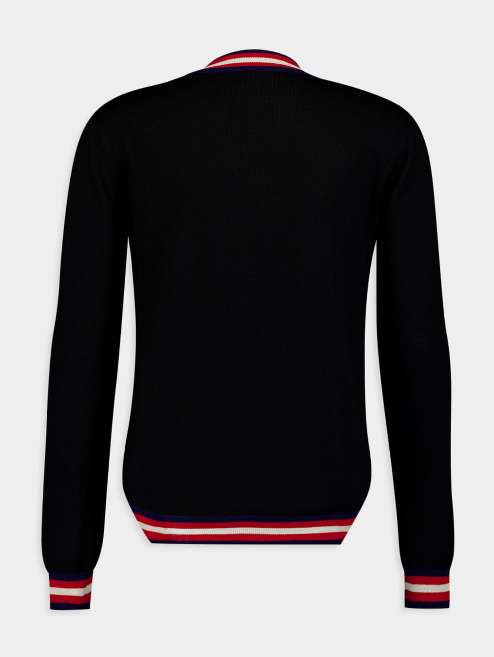 Logo-Jacquard Merino Jumper, crafted from premium merino wool for both style and comfort. Its standout feature is the jacquard logo motif, adding a touch of sophistication to this versatile piece. The jumper is complemented by a stripe trim, classic crew neck, and long sleeves, making it an ideal choice for any occasion. With a straight hem, this jumper combines timeless elegance with modern style.