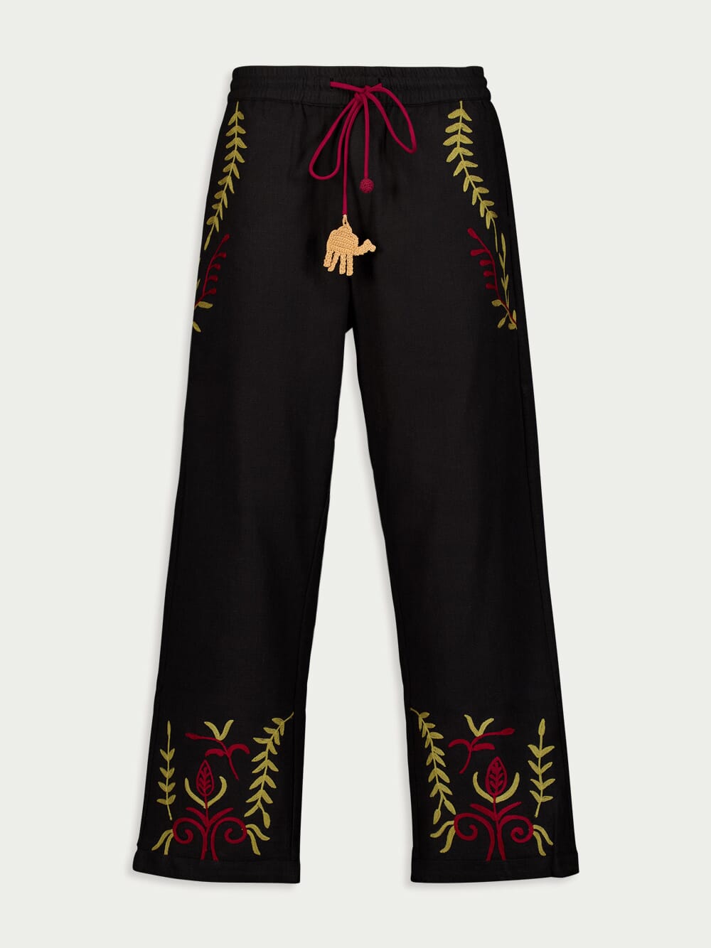 Meticulously crafted from premium woolen fabric, these pants evoke an air of mystique that captivates. Adorned with intricate hand embroidery, each pair embodies refined elegance, a true ode to human artistry.