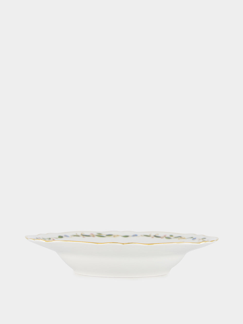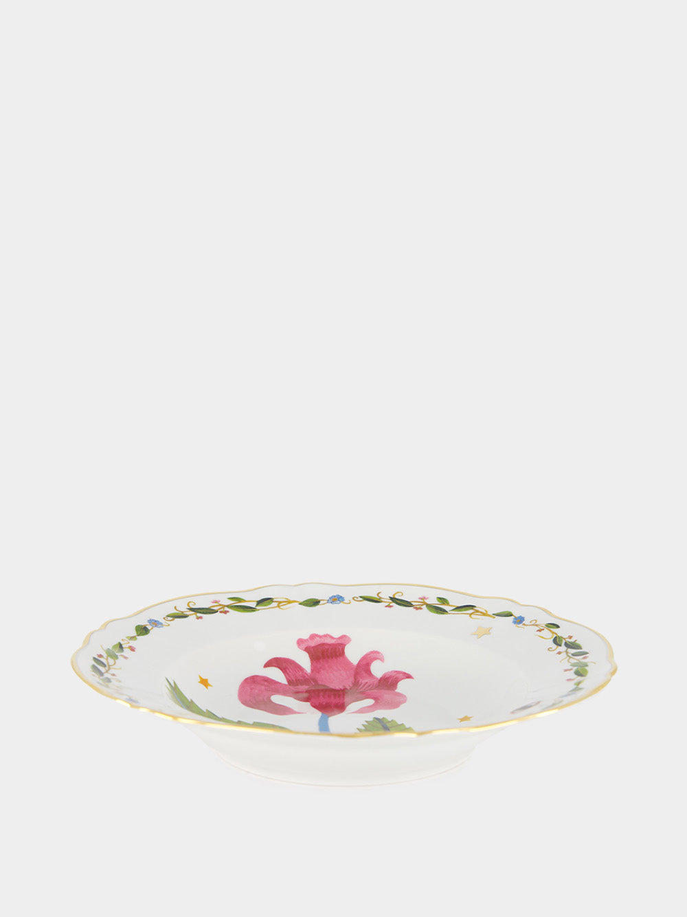 Bitossi La Tavola Scomposta white porcelain soup/pasta plate with multicolour floral design.
