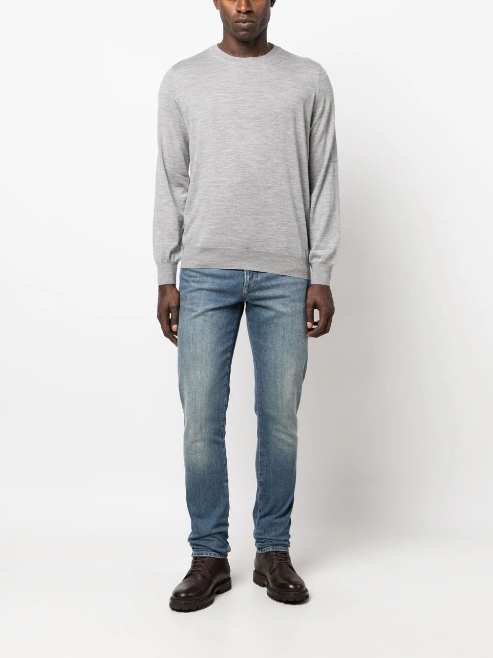 Knitted Wool Jumper crafted from premium, soft wool, this jumper offers unrivaled comfort on chilly days. The understated grey hue exudes sophistication and versatility, making it a staple in your wardrobe.