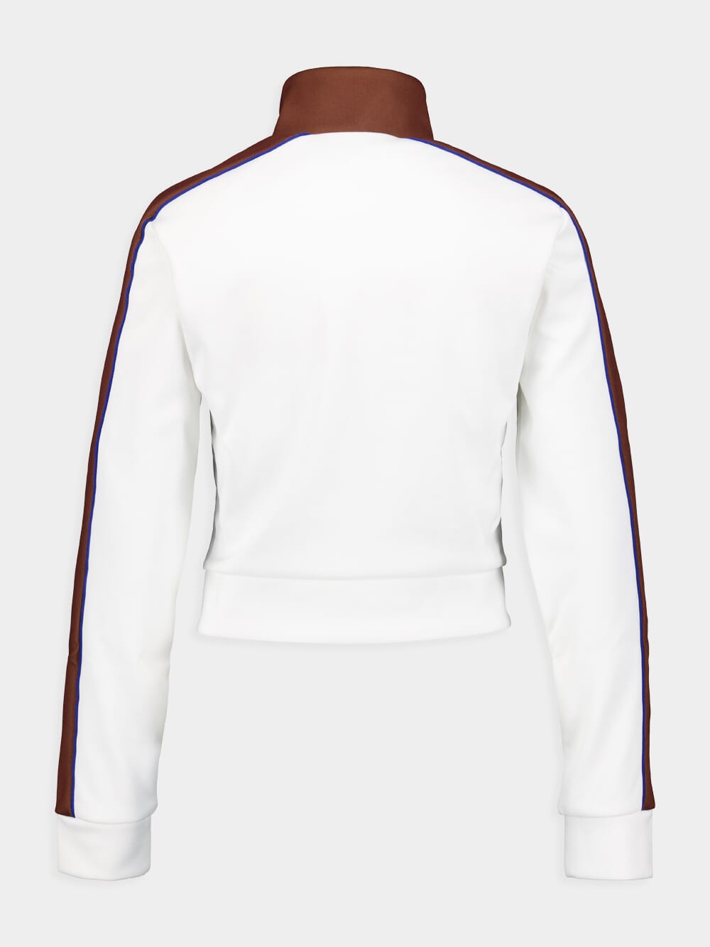 Panelled High-Neck Jacket, a chic blend of style and comfort crafted from a premium cotton blend. The panelled design and appliqué logo showcase a modern aesthetic, while the high neck adds a touch of sophistication. Fasten with ease using the front zip closure, and enjoy the timeless elegance of long sleeves and a straight hem.