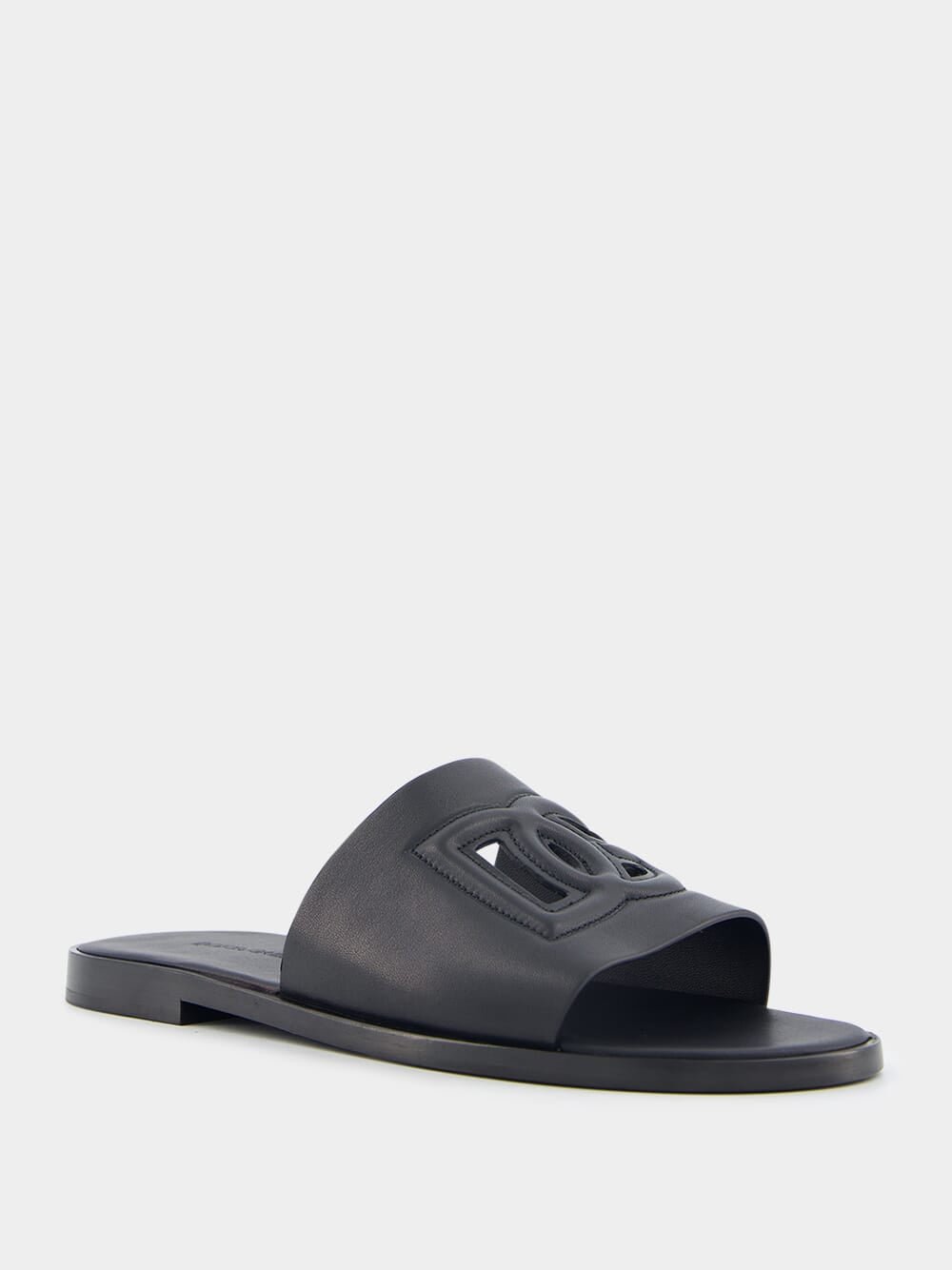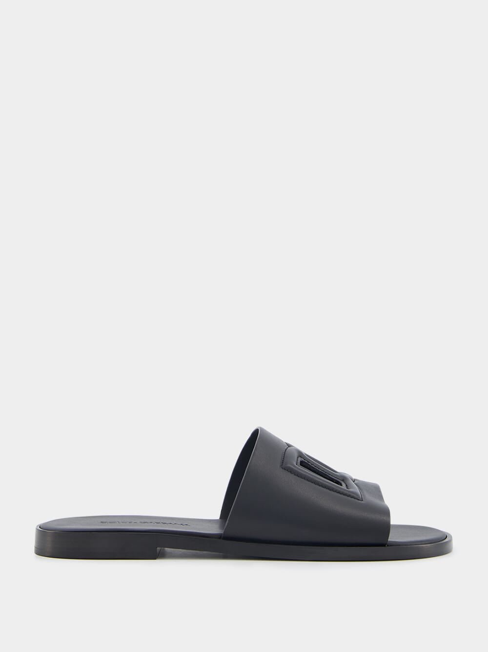 Embossed-Logo Leather Slides, the epitome of chic and comfort. These slides feature a single toe strap with an embossed logo to the front, adding a touch of sophistication to your look. Embrace a breezy feel with an open toe and round toe design. The branded footbed ensures premium quality and style, while the flat leather sole guarantees comfort with every step.