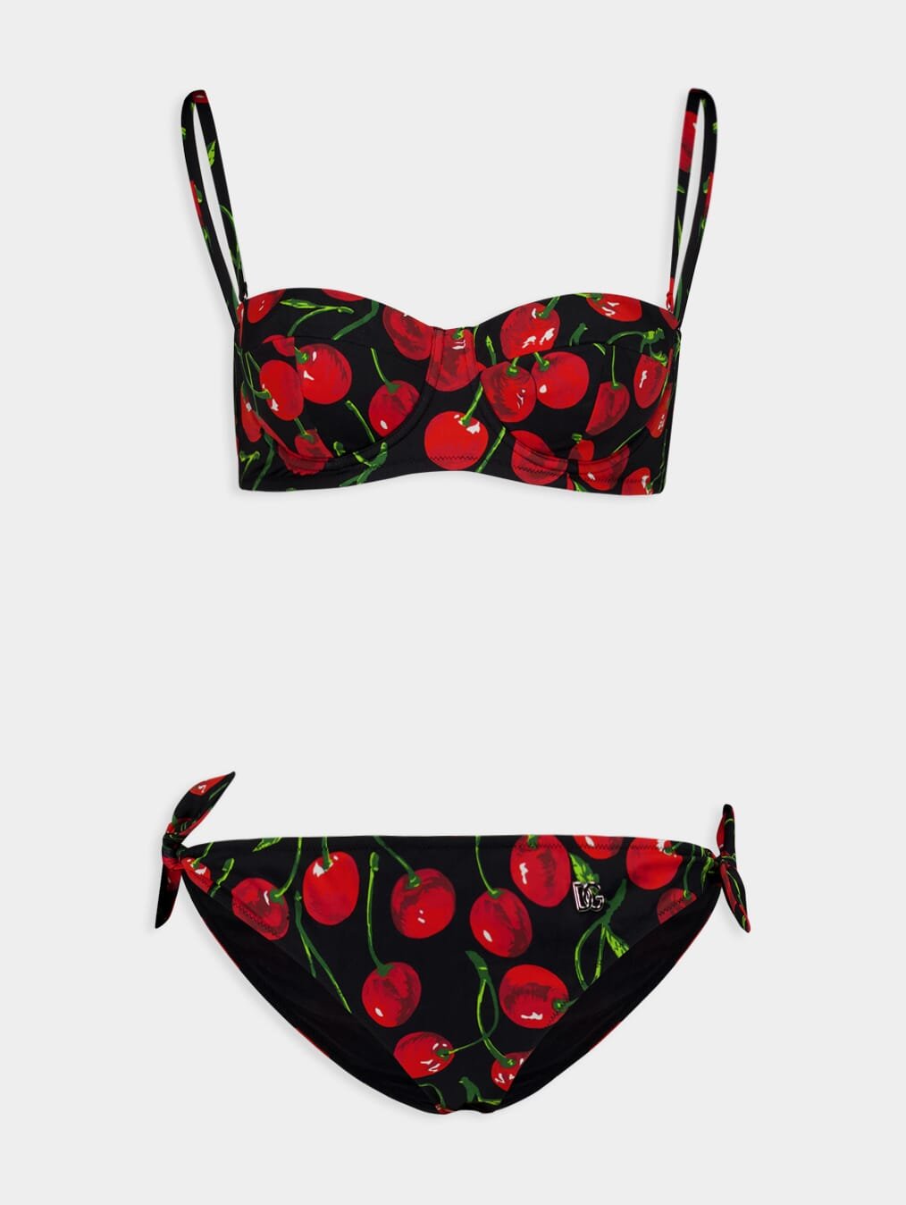 raphic-Print Bikini Set in a striking black and cardinal red color scheme. Designed for comfort, this set features a stretch-design with an eye-catching all-over graphic print. The Bikini Top boasts a sweetheart neck, adjustable shoulder straps, and rear clasp fastening for a personalized fit. The Bikini Bottoms come with an elasticated waistband and side-tie detailing for added style. Remember to try on swimwear over your own garments