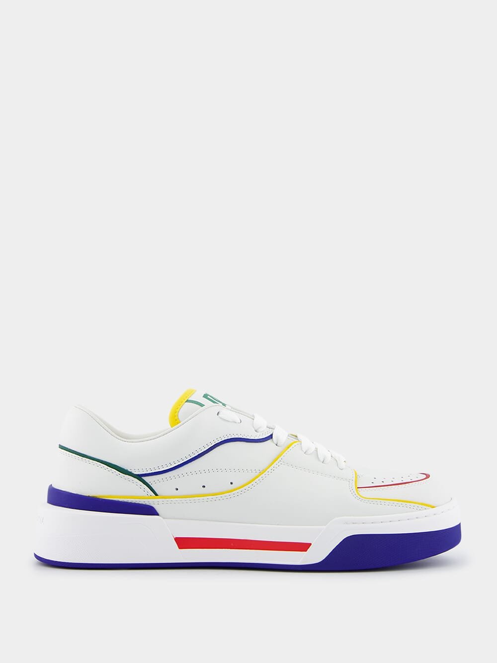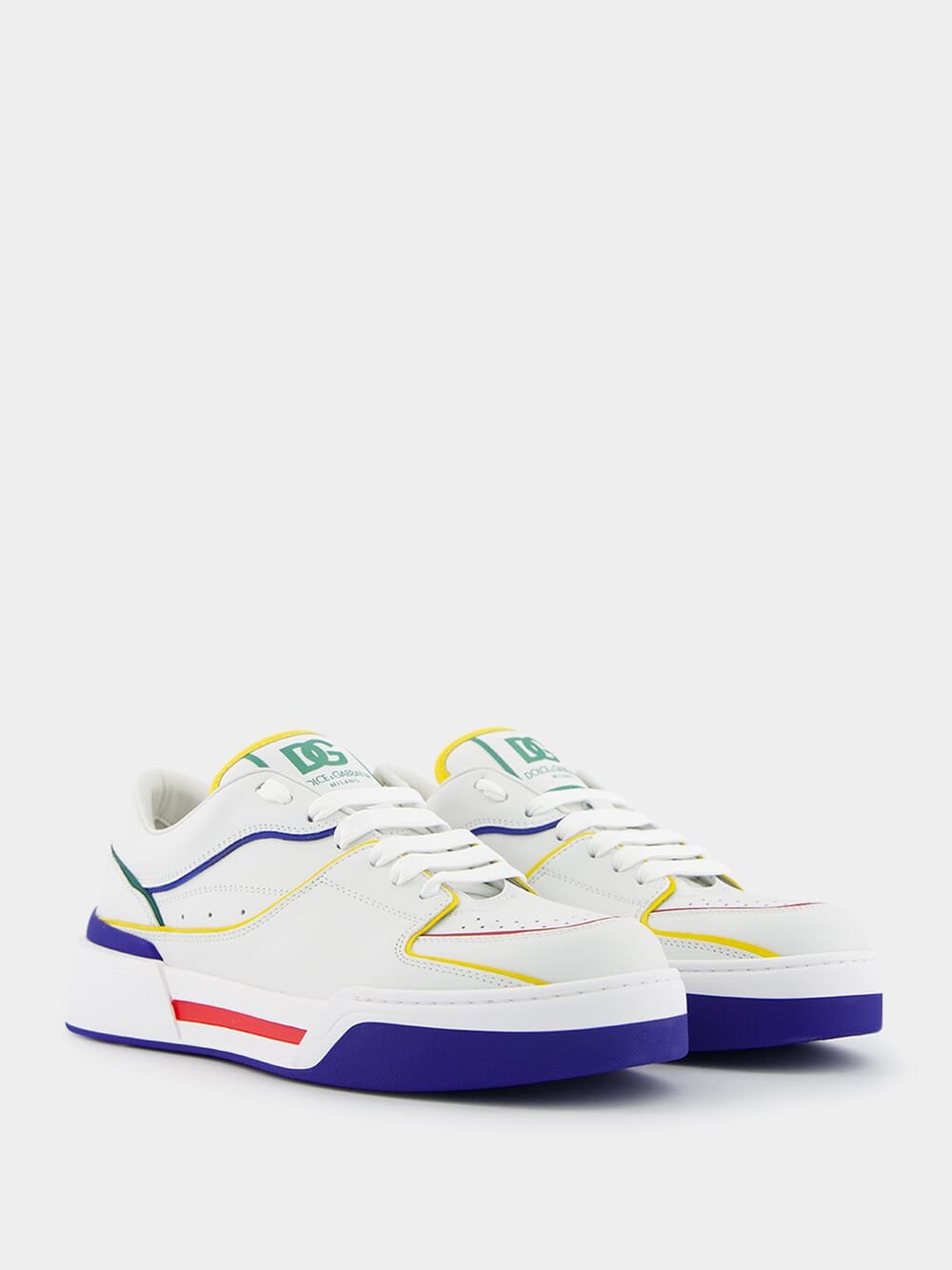 New Roma Contrast-Trimmed Sneakers, feature eye-catching contrasting trim, adding a modern and trendy touch to your outfit. Embrace breathability and texture with perforated detailing, ensuring a comfortable experience for your feet. The round toe and front lace-up fastening offer a classic and secure fit. Enjoy premium quality and comfort with the branded insole, while the flat rubber sole guarantees durability and a fashion-forward look.