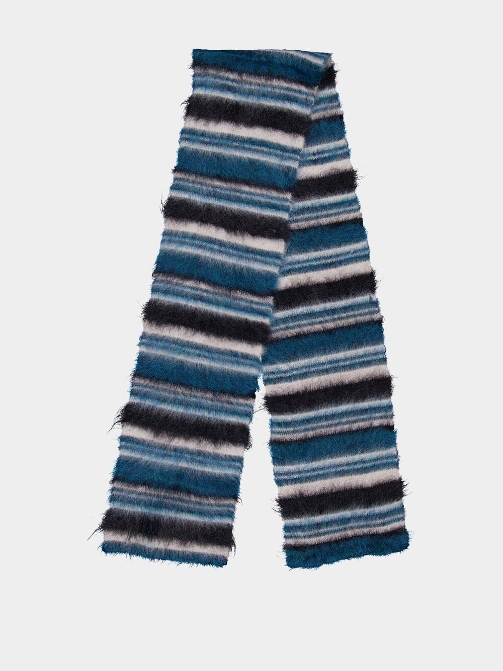 Duke Striped Brushed Blue Scarf, a cozy masterpiece crafted from a mohair-wool blend. Immerse yourself in its luxurious brushed effect, while the stylish horizontal stripe pattern adds a modern flair. The versatile rectangle shape ensures easy styling for any occasion, and the finished edge completes the look with sophistication.