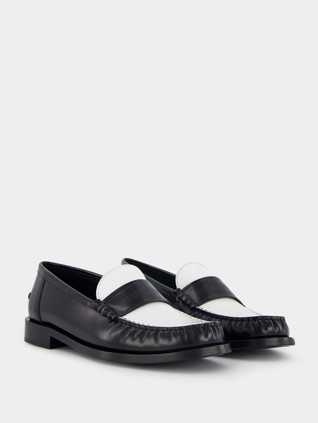 Moccasin with Logo, brit-inspired loafers that feature two-tone detailing on the apron toe, exuding a touch of sophistication. The stamped logo on the saddle adds subtle and discrete customization, showcasing attention to detail. Crafted with a leather sole and heel, these moccasins offer both fashion and comfort.