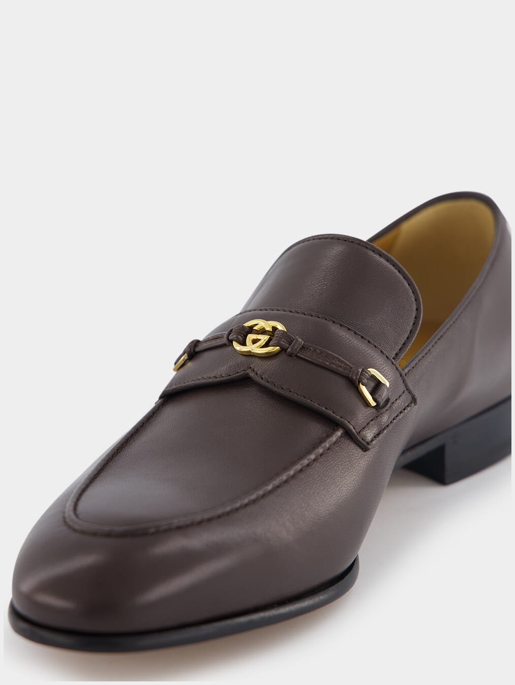 Interlocking G Leather Loafers, a fusion of style and luxury featuring the signature Interlocking G logo and gold-tone hardware. With an elegant almond toe design and convenient slip-on style, these loafers offer both comfort and sophistication. The branded insole adds a touch of exclusivity, while the leather sole ensures durability and a refined finish.
