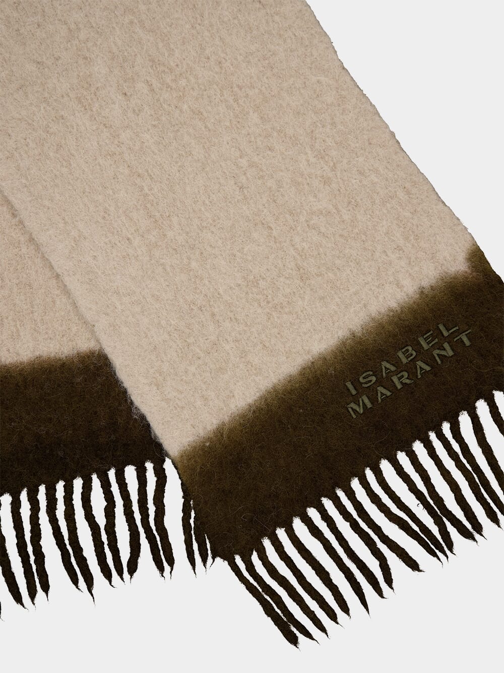 Firny Embroidered-Logo Alpaca-Blend Scarf, meticulously crafted from a cozy alpaca wool-blend. Elevate your winter wardrobe with its captivating gradient effect and chic fringe detailing, adding a touch of sophistication to every ensemble. The elegantly embroidered logo to the front enhances its unique charm, making it a standout accessory.
