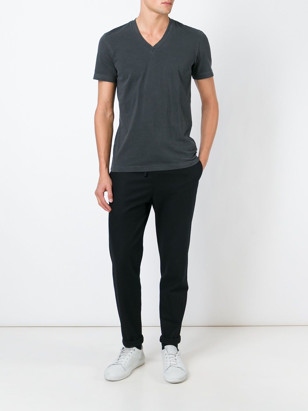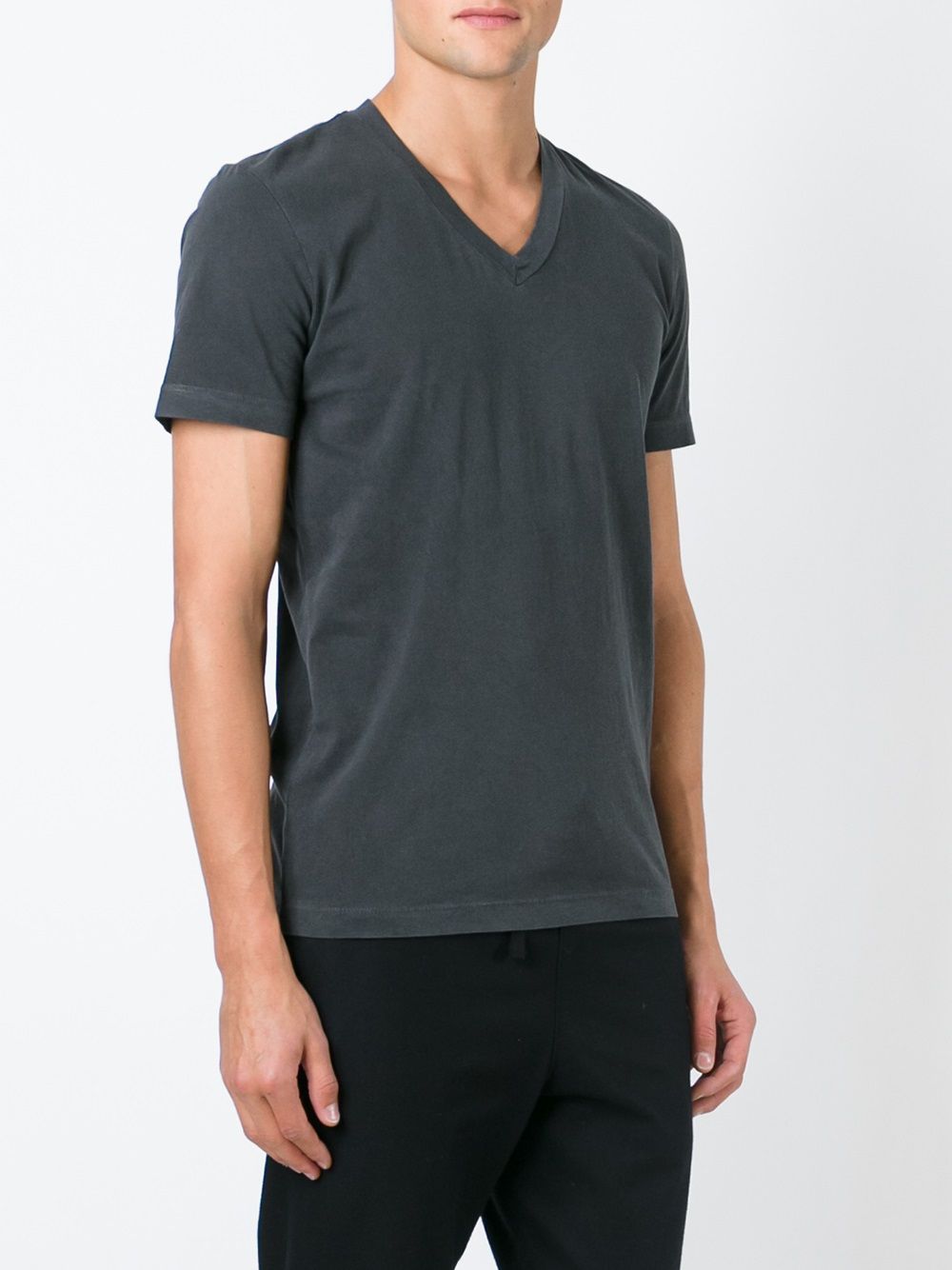 James Perse drak grey cotton classic t-shirt with clean finished sleeve and bottom hems.