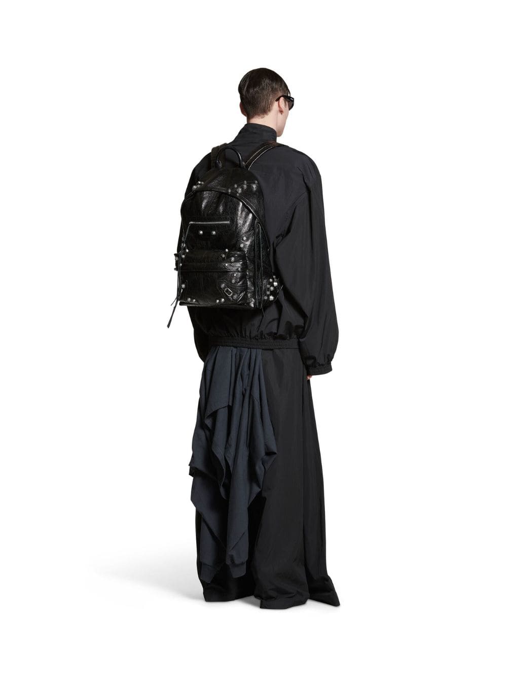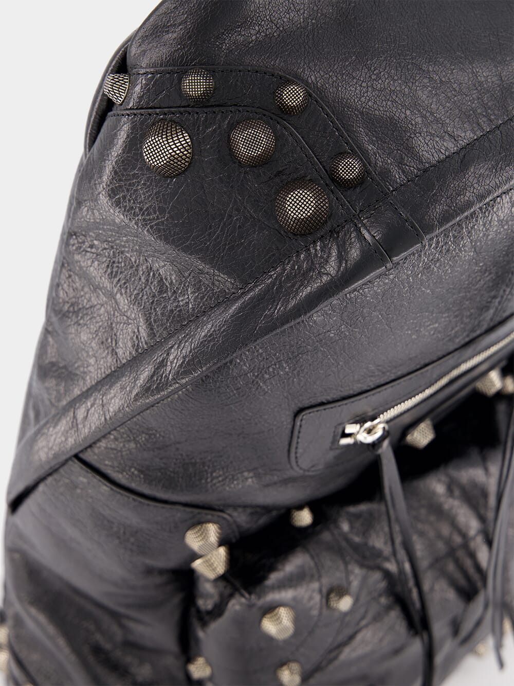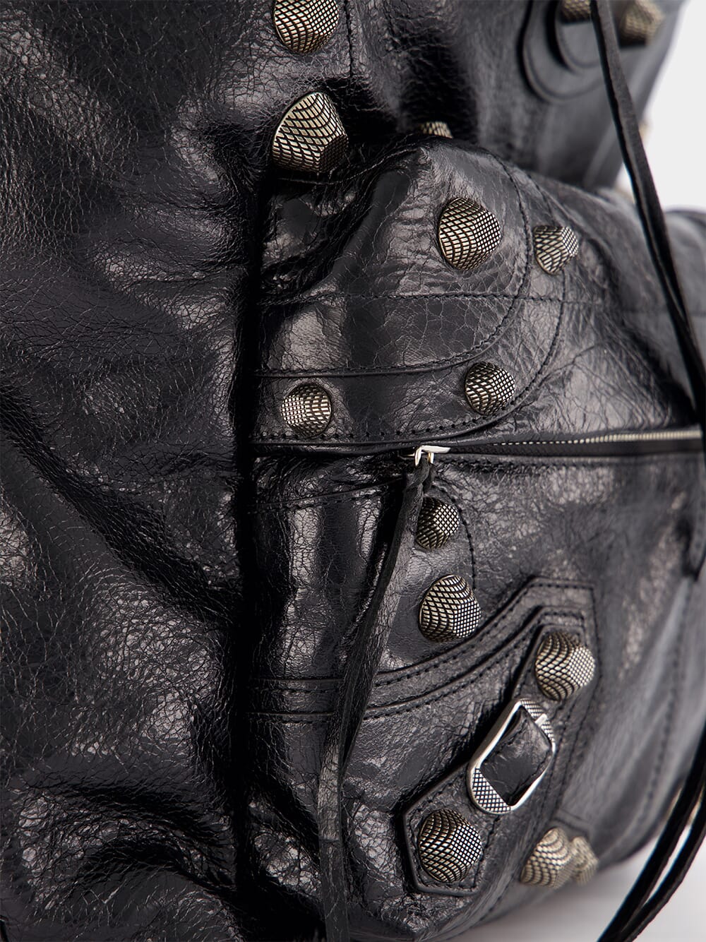 Le Cagole Leather Backpack, crafted from luxurious Arena lambskin. This premium backpack features a unique hand-braided leather handle, adjustable shoulder straps for comfort, and aged-silver hardware for timeless elegance. With a top double-ended zip-fastening closure and two zipped pockets at the front, your essentials are secure and accessible. Stay organized with one inner zipped pocket and one inner patch pocket, all within a durable cotton canvas lining.