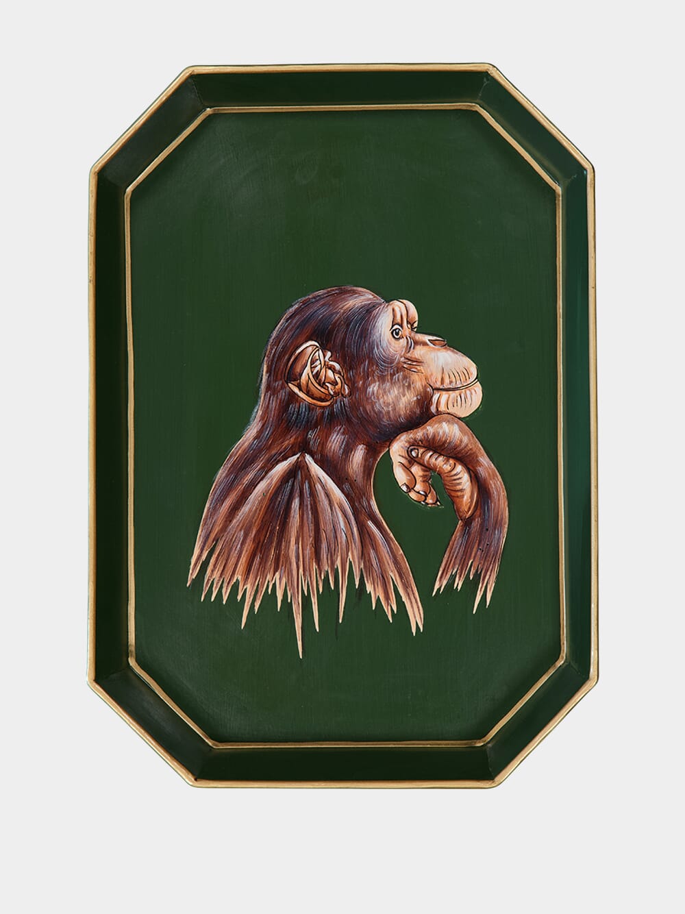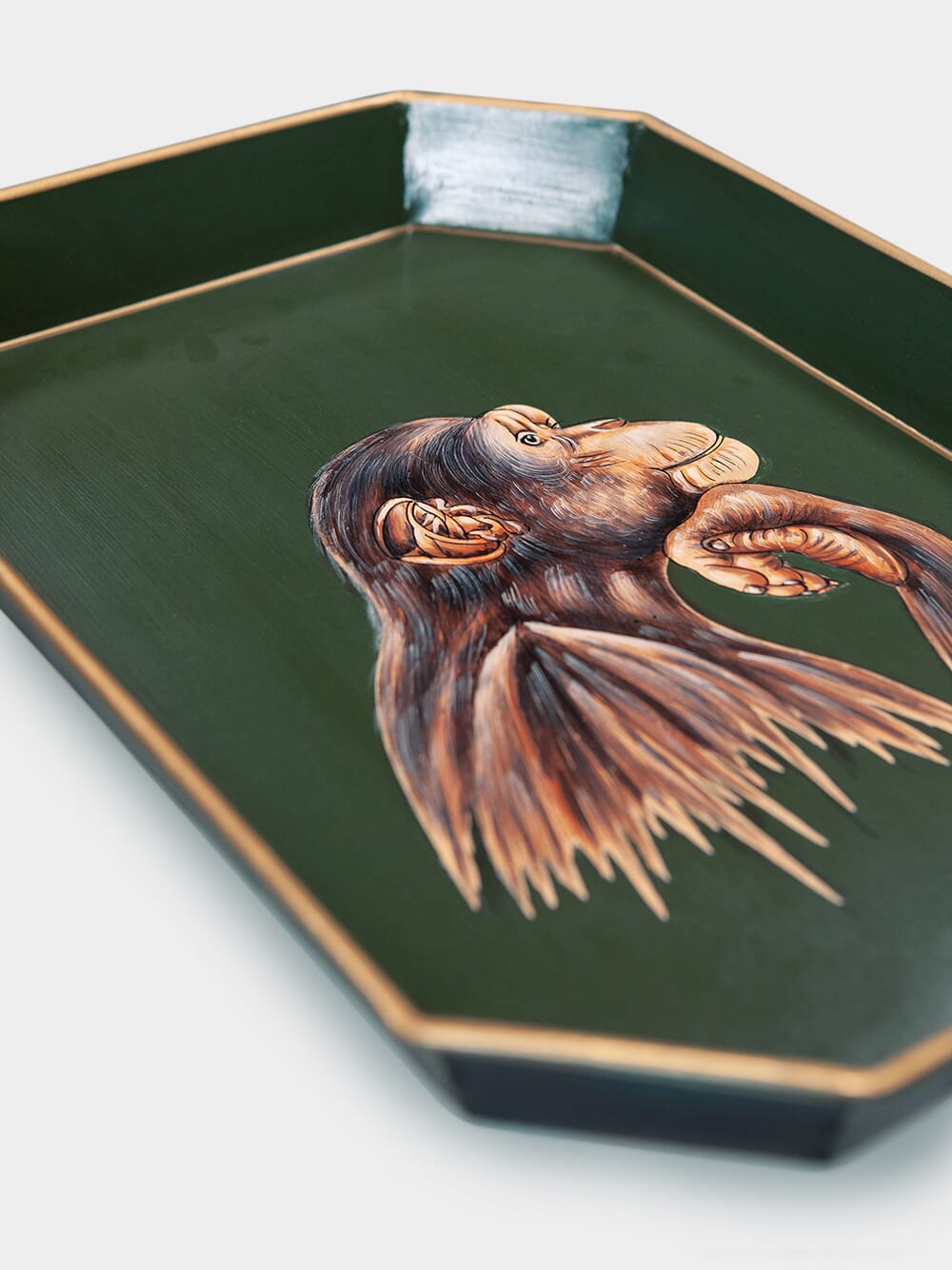 Les Ottomans Fauna collection, multicolour iron tray with handpaited monkey.