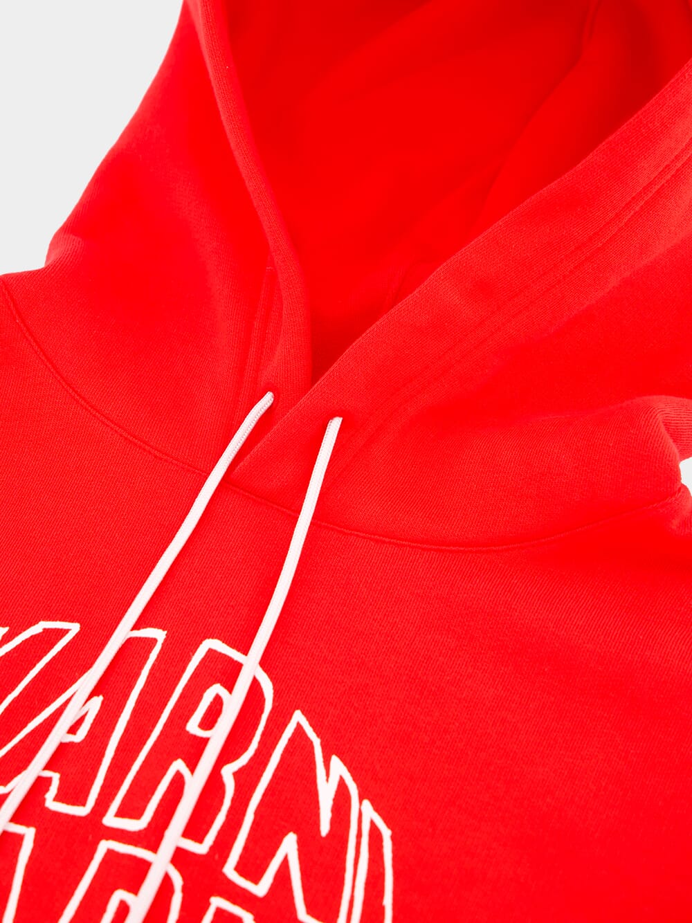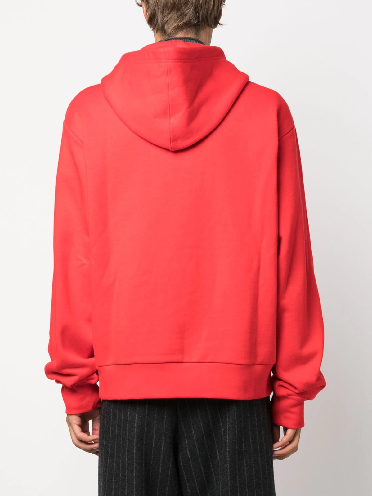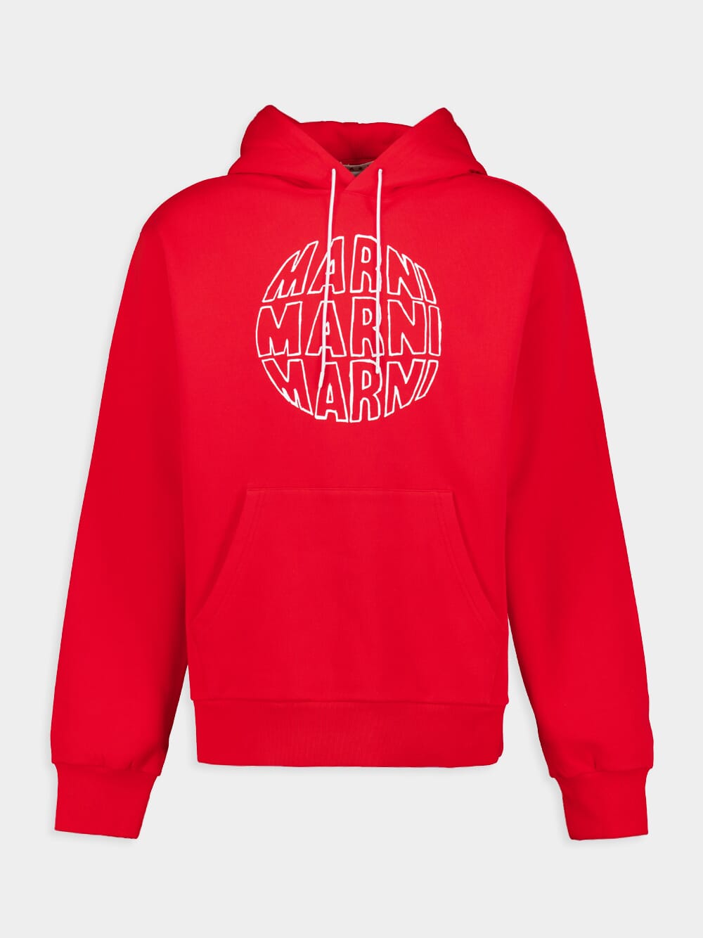 Logo-Print Cotton Hoodie, featuring a bold logo print on the front that effortlessly merges comfort and fashion. Designed with a drawstring hood and long sleeves, this hoodie offers a relaxed yet stylish look. The ribbed cuffs and hem ensure a snug fit, while the flat central pocket adds functionality. Embrace modern streetwear with this on-trend hoodie, featuring a straight hem for a polished finish.
