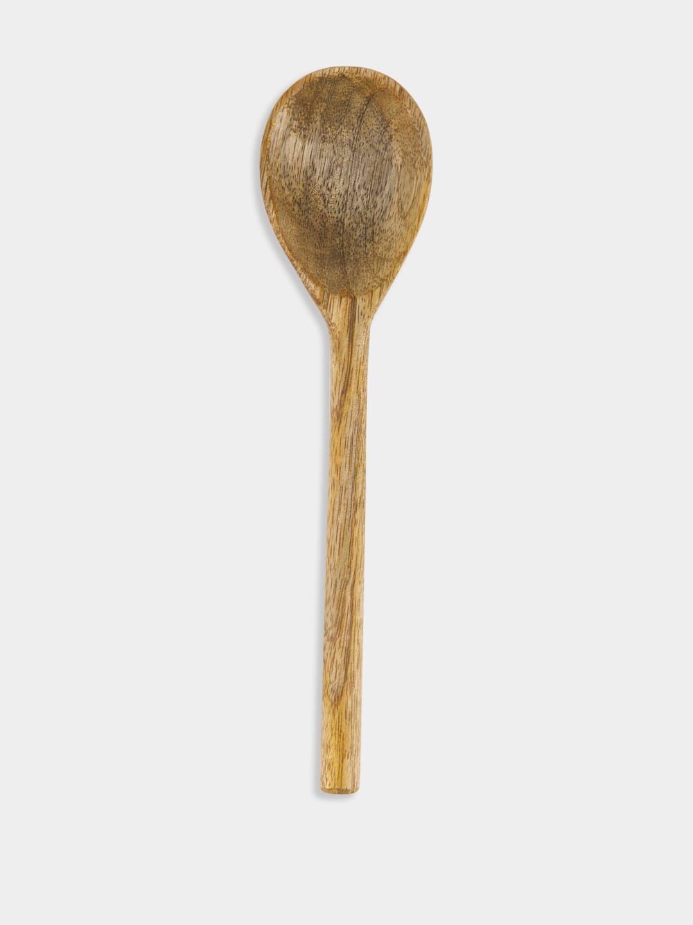Wooden Spoon, meticulously hand-carved from authentic Indian mango wood. Embrace the uniqueness of mango wood, with its varied heartwood colors, visible grain patterns, and knots, ensuring each spoon is one-of-a-kind.