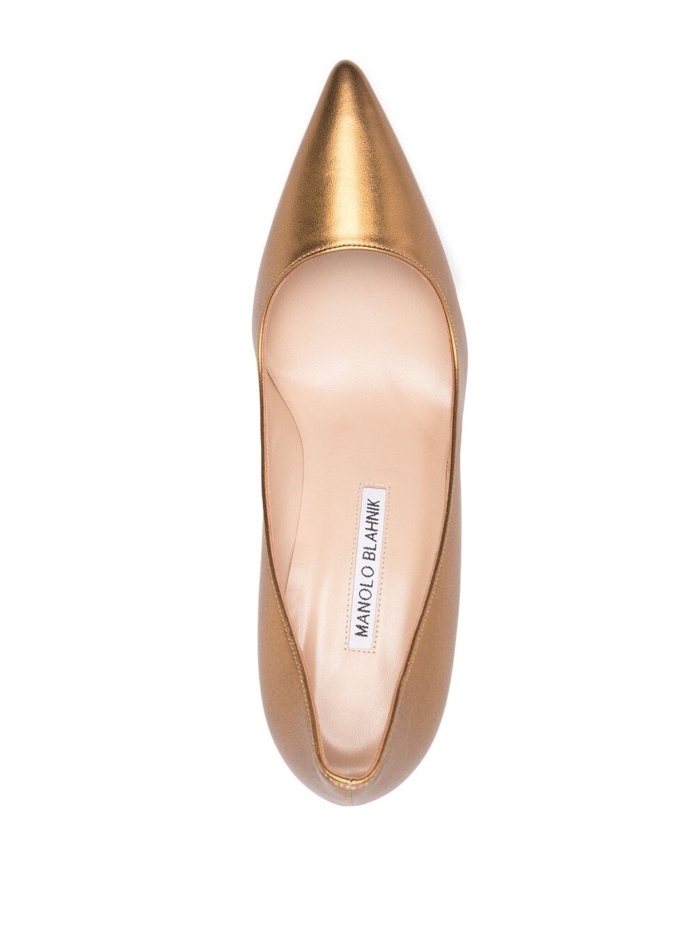 Manolo Blahnik BB 90 bronze calf leather pumps with pointed toe and stiletto high heel.