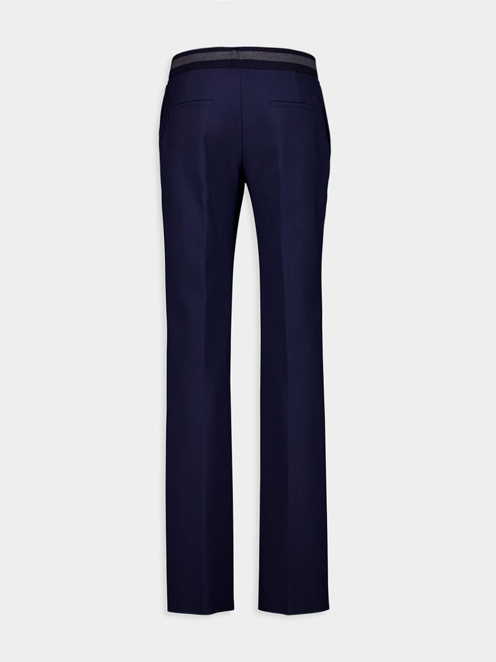 Mid-Rise Stripe-Detail Trousers, featuring elegant stripe detailing and logo-engraved buttons for a sophisticated touch. These mid-rise trousers offer a comfortable fit with their stretch-design and elasticated waistband, ensuring all-day comfort. The front press-stud and zip fastening make for easy wear, while the two side slit pockets and two rear welt pockets add functionality. With a classic straight leg and straight hem, these trousers are a versatile addition to your wardrobe.