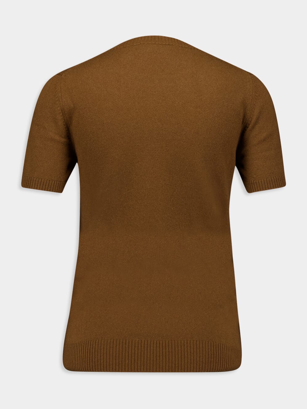 Slim-Fit Brown Cashmere Sweater, a luxurious wardrobe essential designed for modern elegance. With short sleeves and a slim fit, the plain knit exudes sophistication. The ribbed knit crew neck and regular shoulder add classic charm, while the ribbed knit sleeve trim and hem provide a polished finish.