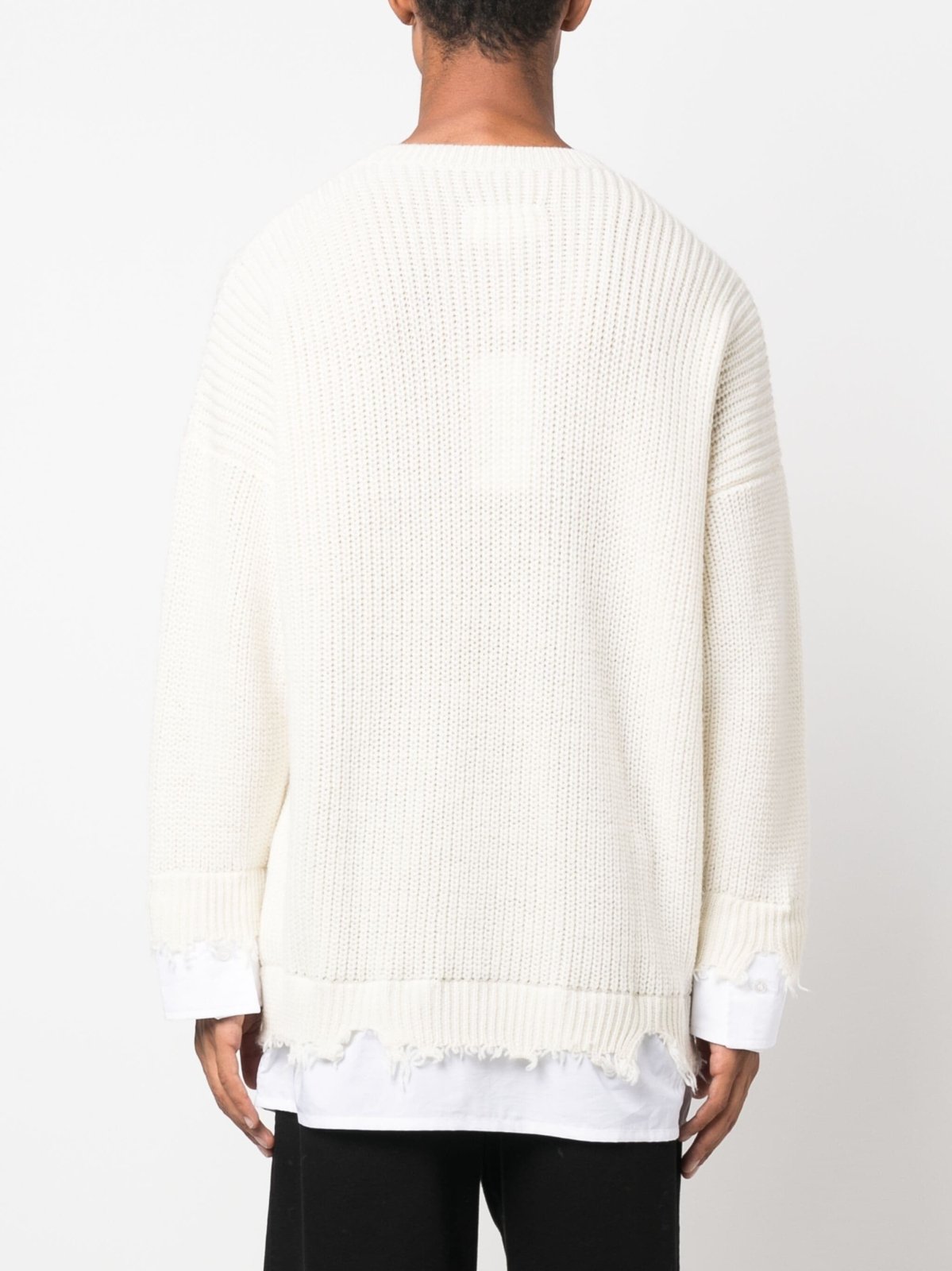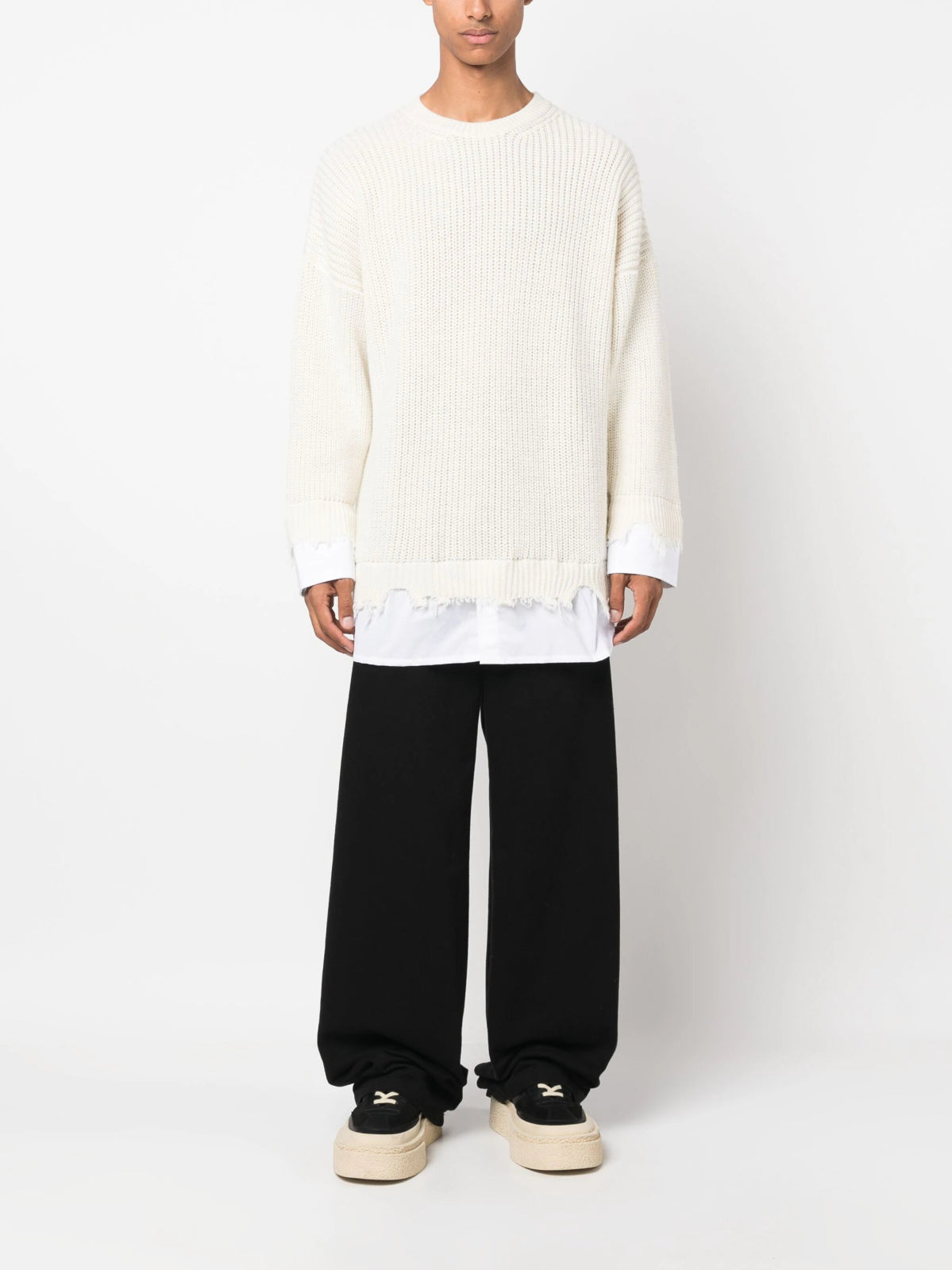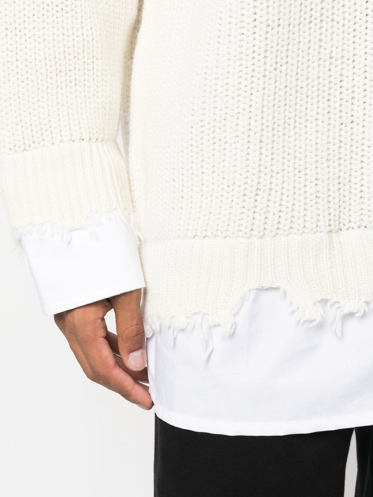 C-Neck Crochet-Knit Jumper, a blend of fashion and comfort. Crafted from high-quality cotton, this jumper showcases a layered design, crochet knit, and a trendy distressed finish. The classic crew neck and drop shoulder add a touch of sophistication, while the long sleeves with ribbed cuffs provide a snug fit. With a straight hemline, this jumper offers timeless appeal. Discover the perfect blend of elegance and comfort in this must-have addition to your wardrobe.