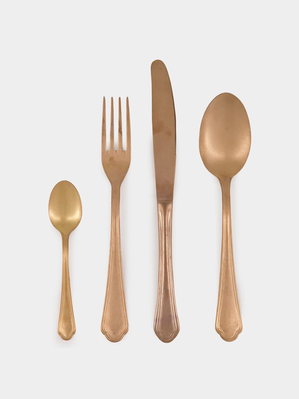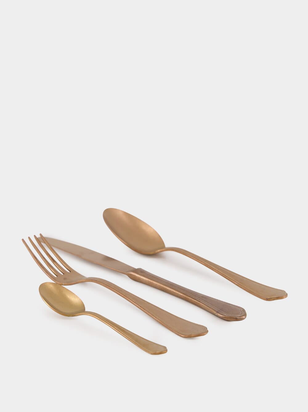 Neva Preziosa set of 24 in wood effect cutlery embellished with a special PVD coating on the steel.