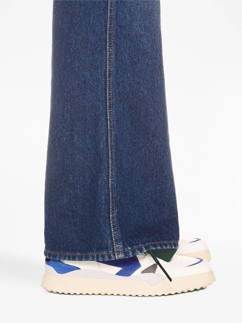 Signature Arrows Motif Sponge Sneakers, meticulously crafted from premium leather. These sneakers feature a sleek panelled design, iconic Arrows motif, and signature Zip Tie tag for a distinctive look. The pull-tab at the heel, tonal stitching, and perforated toebox add both style and functionality. With a secure front lace-up fastening, branded footbed, and comfortable round toe, these sneakers are designed for all-day wear. The ridged rubber sole provides traction, but please note that due to the dyeing process, these sneakers should not be exposed to water.