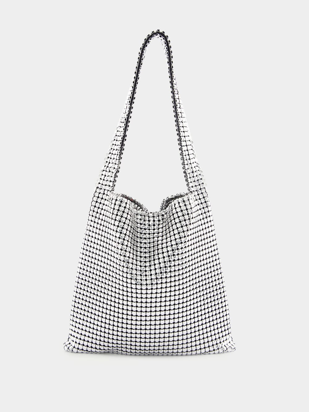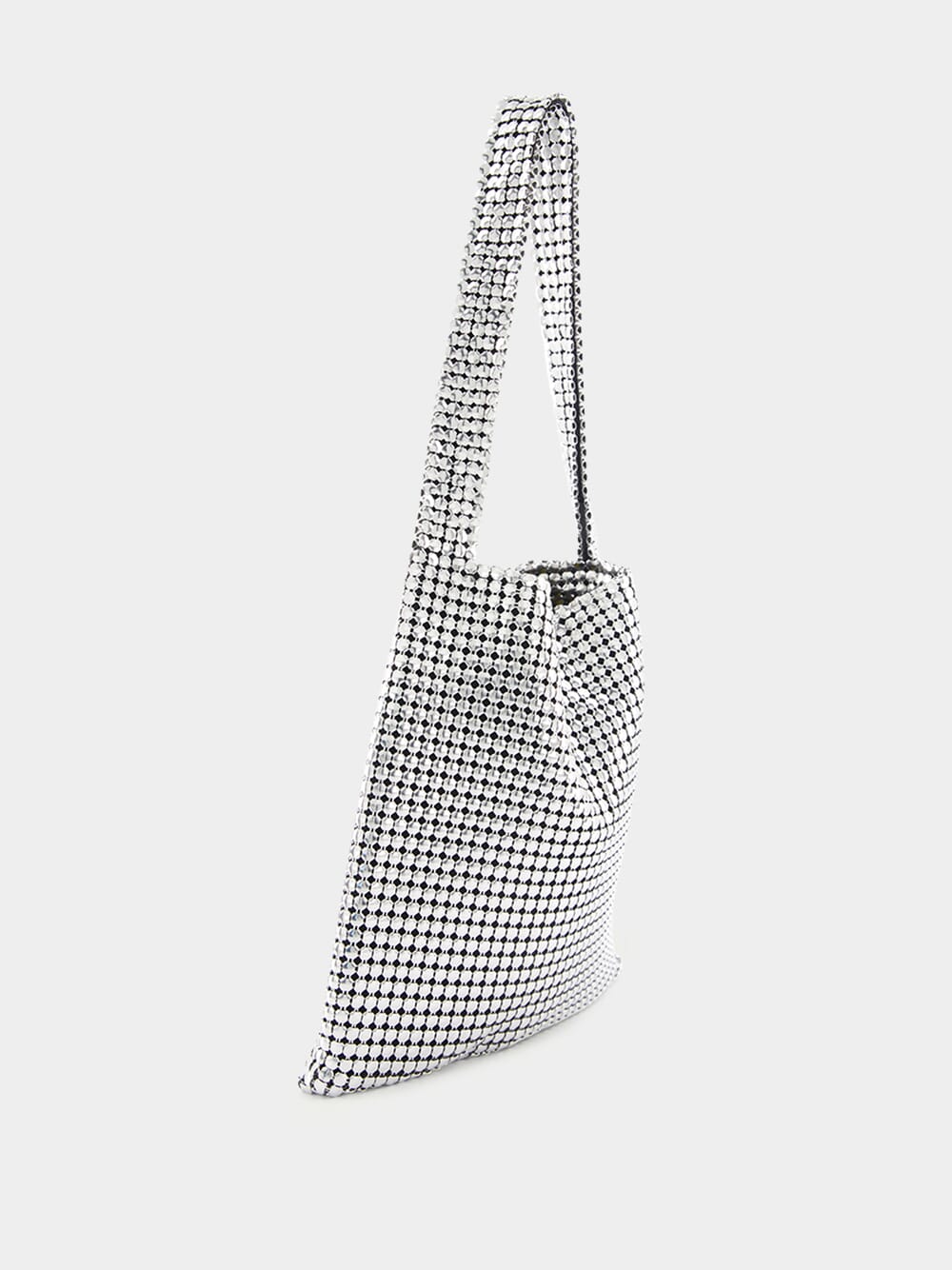 Pixel hobo bag crafted in stunning silver, this hobo bag is designed to catch the eye and elevate your ensemble. The pixelated pattern adds a modern edge, while the spacious interior offers ample room for your belongings. With its impeccable craftsmanship and sleek silver finish, this bag is a must-have for trendsetters.