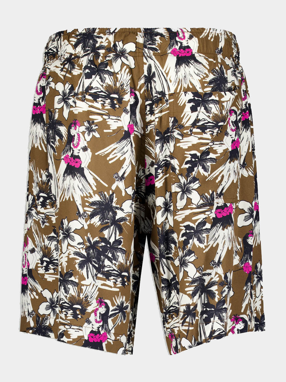 Hula Cargo Graphic-Print Shorts, the perfect blend of style and comfort. These relaxed fit shorts feature a mid-rise and dropped crotch for a modern and laid-back look. The elasticated drawstring waistband ensures a comfortable and customizable fit. Embrace the functionality of two slip pockets at the sides and a patch pocket at the back, offering ample storage for your essentials. Complete with an all-over graphic floral pattern, these lightweight shorts are perfect for any casual occasion.