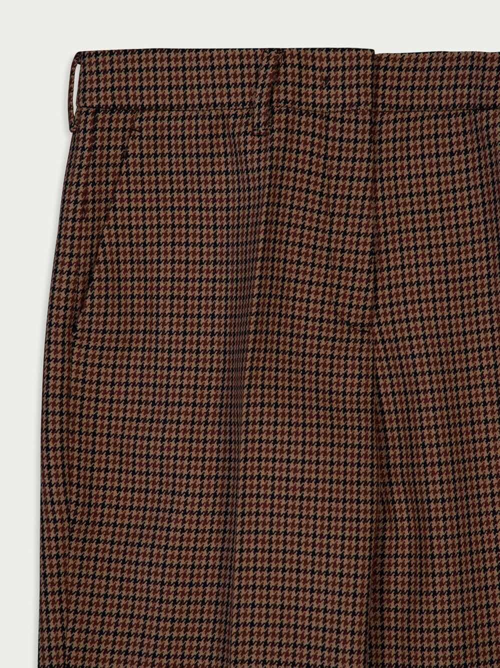 Check Wool Trousers, meticulously crafted with a mid-rise silhouette for a classic fit. These trousers feature convenient belt loops and a concealed front fastening that adds a touch of modern refinement. The side pouch pockets provide both style and functionality, while the pressed crease detail enhances the polished look. With a straight leg design, these trousers effortlessly combine comfort and elegance.
