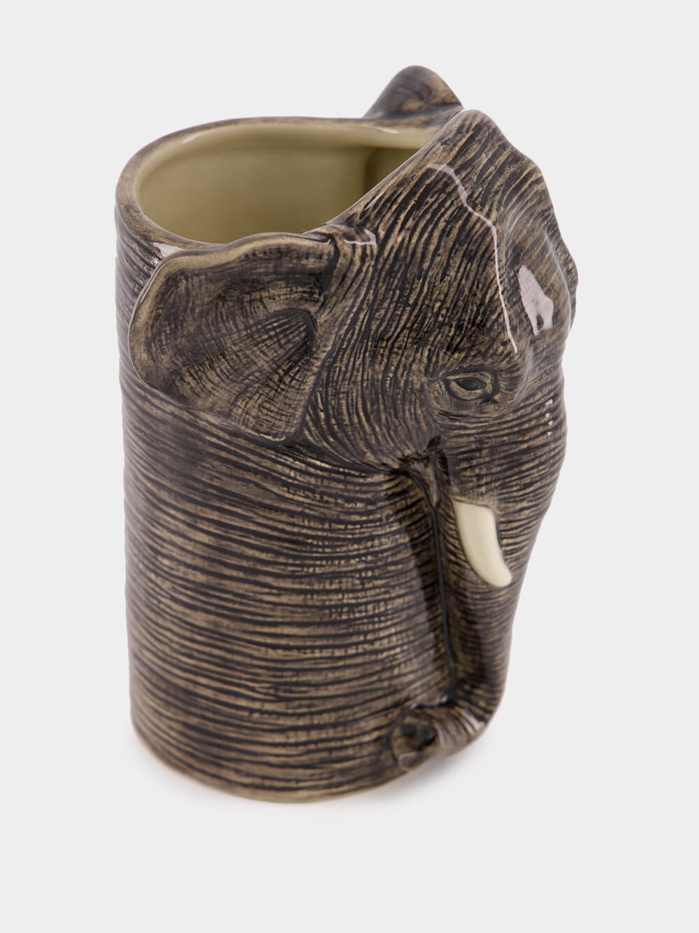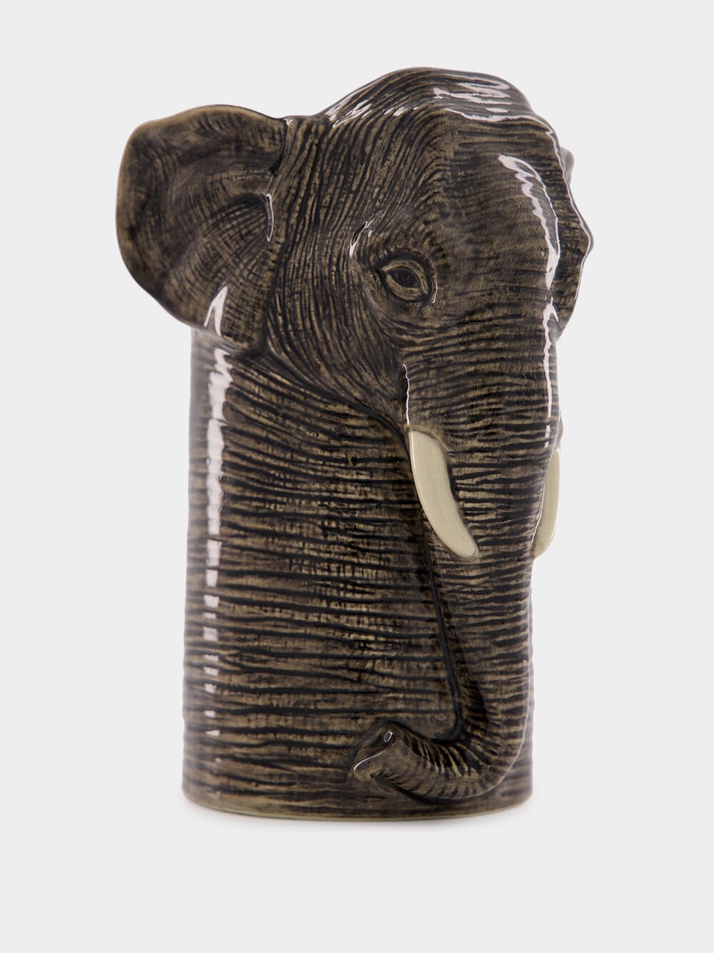 Quail Ceramics elephant utensil pot in handpainted stoneware.