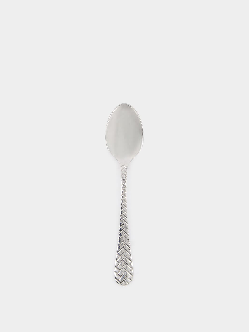 Tea Spoon Nata, a cutlery masterpiece inspired by woven straw mats. Crafted from durable stainless steel, this tea spoon combines efficiency with a distinctive pattern that's sure to enchant. Perfect for stirring and sipping your favorite brews, it's designed to elevate your tea time. Please note that this tea spoon is distinct from cake spoons, ensuring a unique addition to your utensil collection.