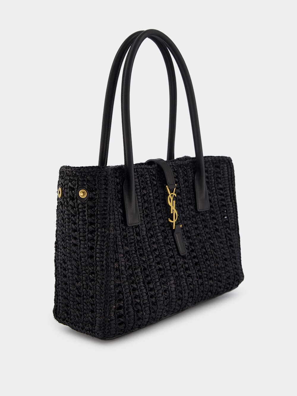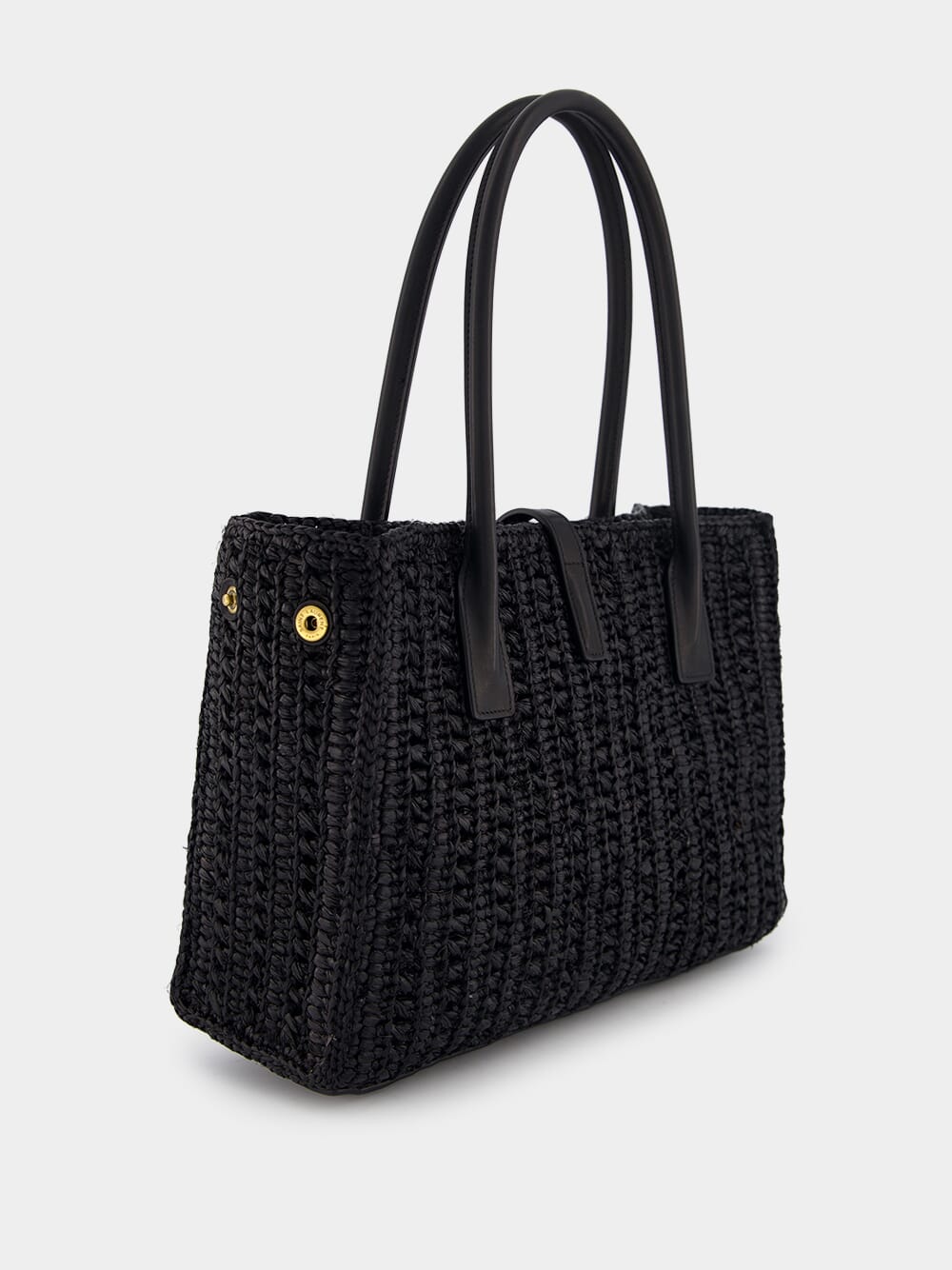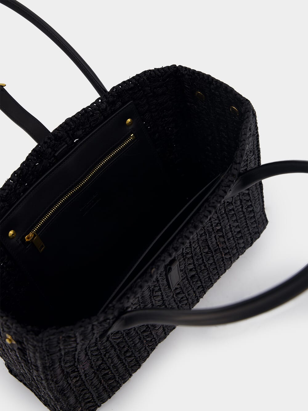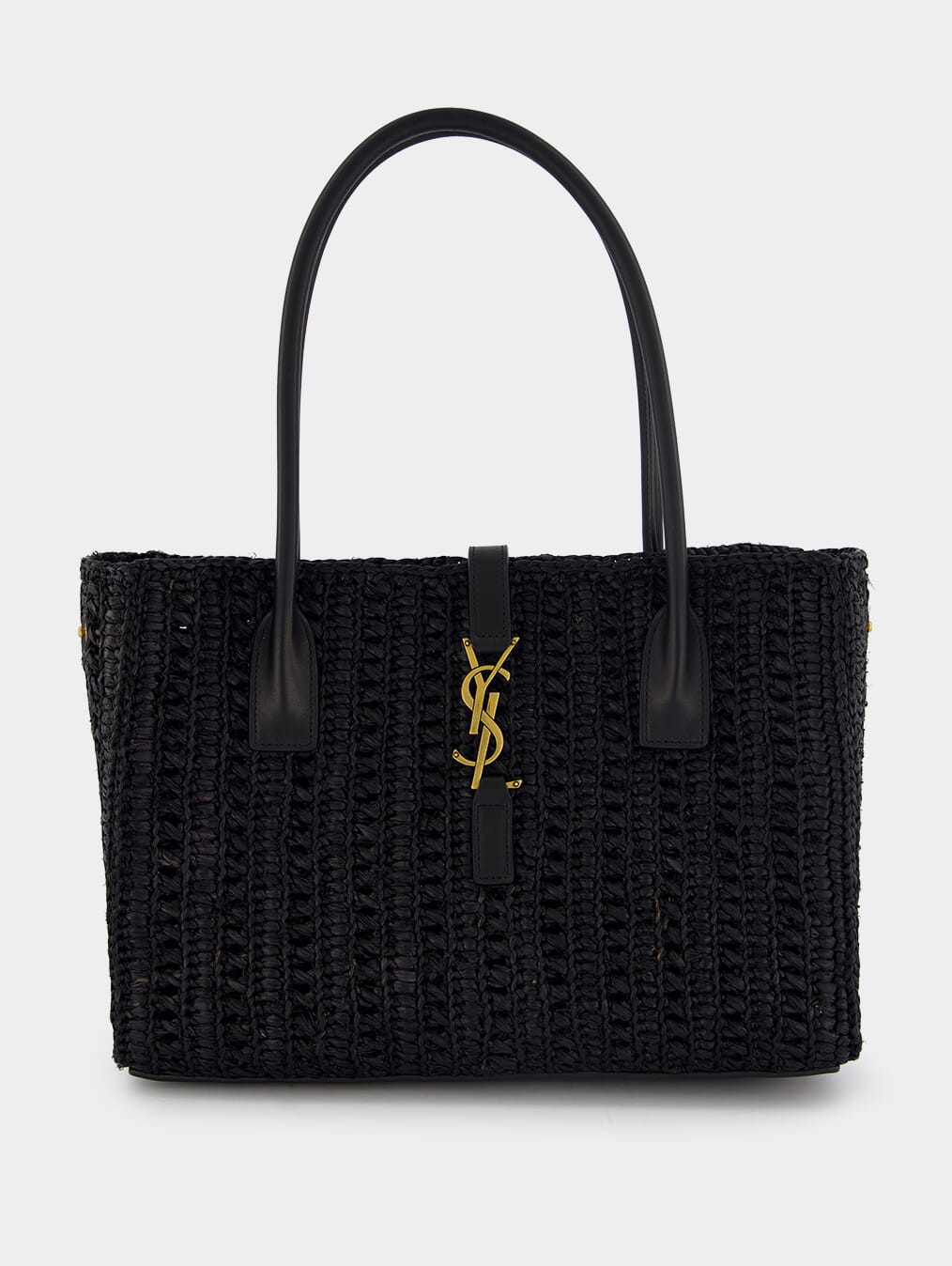 Panier Raffia Tote Bag, showcasing a stunning woven raffia design that exudes natural elegance. Its sleek rectangle body is accentuated by a gleaming gold-tone logo plaque, making it a true fashion statement. The leather top handles offer both comfort and sophistication, while the secure strap closure with a hook fastening ensures your essentials are protected. Inside, the spacious main compartment houses an internal zip-fastening pocket for convenient organization. With sumptuous leather lining, this tote bag effortlessly combines fashion and functionality. Shop now to elevate your accessory collection.