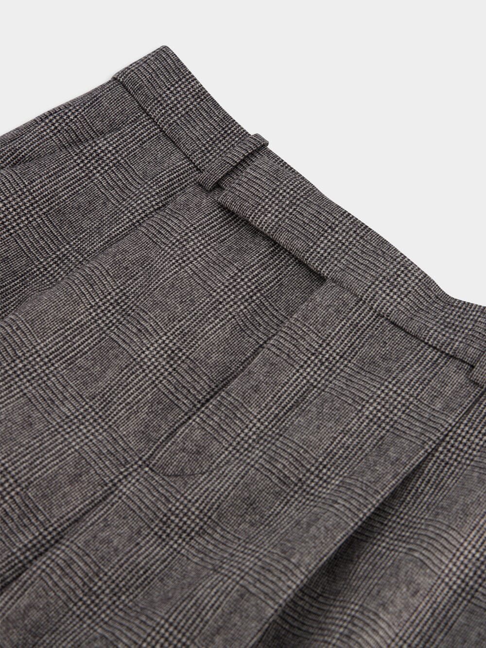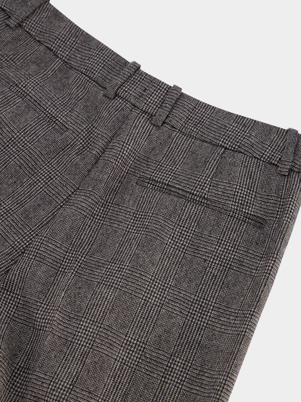 Prince of Wales Flannel Flared Trousers, a blend of style and sophistication with a silk lining for luxurious comfort. Enjoy a sleek look with a concealed button, hook, and zip closure. Practicality meets elegance with two concealed pockets at the front and two jetted pockets at the back. The waistband with belt loops adds a versatile touch to these trousers, making them an ideal addition to your polished wardrobe.
