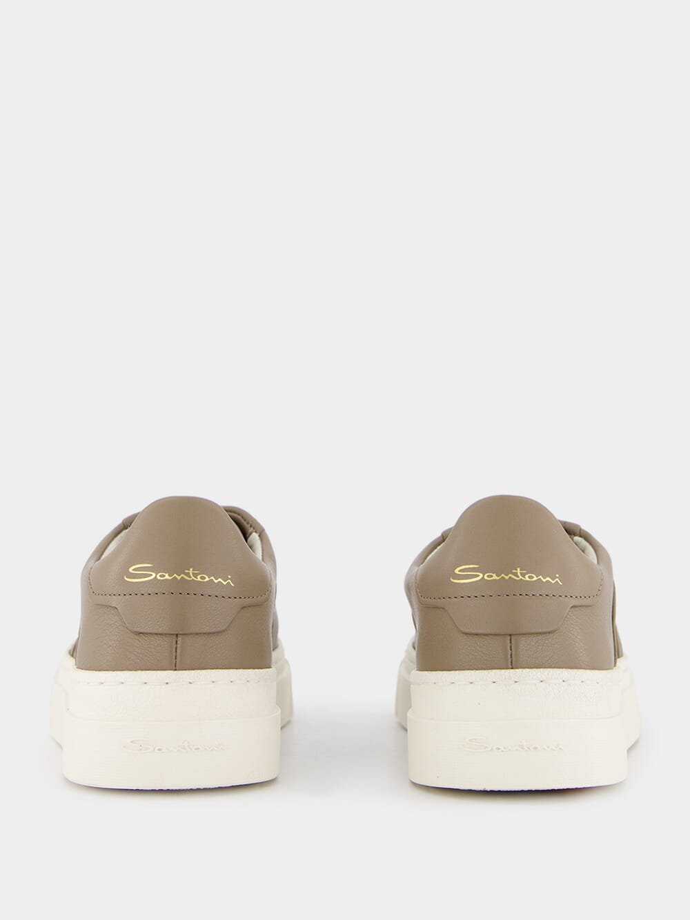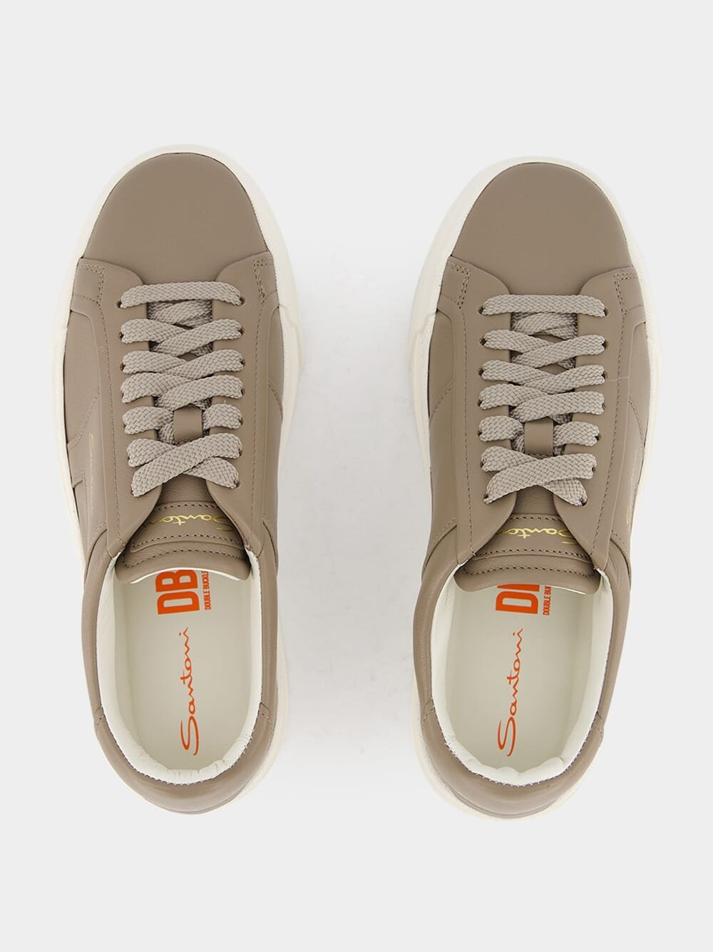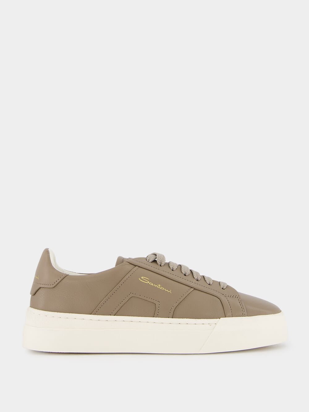 Double Buckle Leather Sneakers in Beige