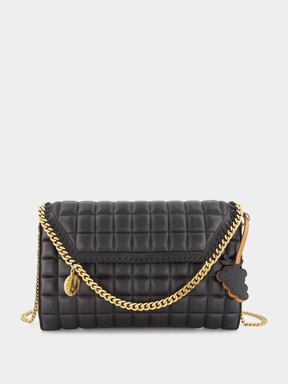 Quilted Crossbody Bag, a chic essential crafted from luxe faux leather. Featuring a signature diamond-cut chain-link trim and a versatile chain-link shoulder strap, this bag effortlessly combines style with practicality. The foldover top with a magnetic fastening reveals a spacious main compartment, complete with an internal zip-fastening pocket and a sleek logo patch.
